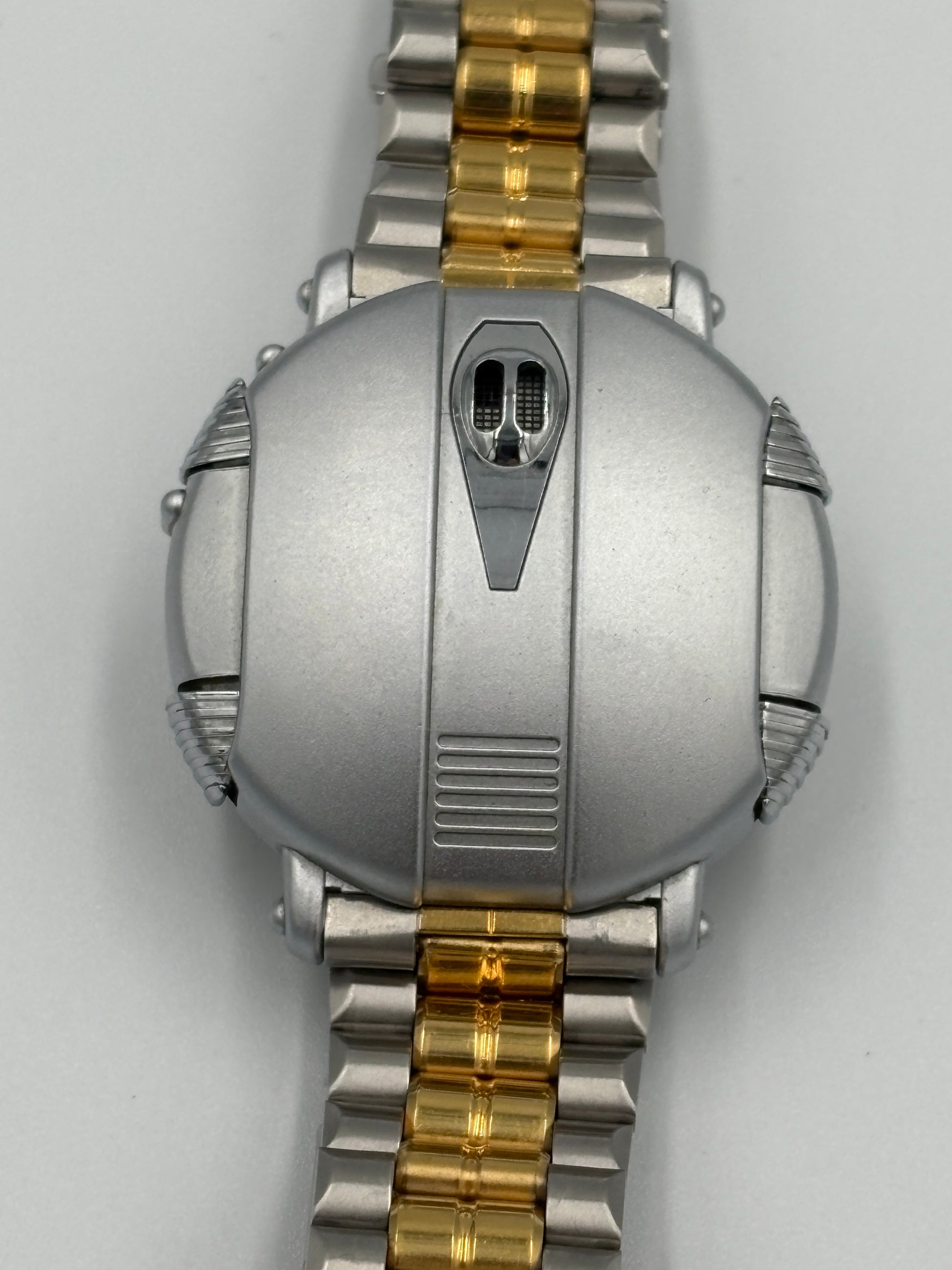 It has a very cool and beautiful design, like a UFO or spaceship designed in the 80s, and looks futuristic even today. It tells you the time by voice. It is in good working order. Matsumoto Reiji has passed away, so the value will continue to increase. It is an ultra rare watch even in Japan.