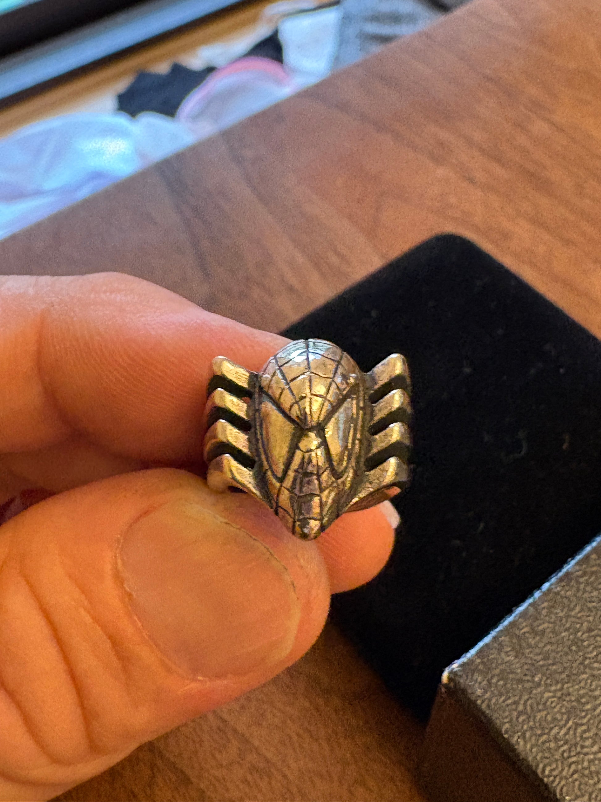This silver ring is made by JAP Studio, which is famous in Japan for making very elaborate and realistic silver accessories. This Spider-Man ring was made with permission from Marvel. It's not a fake. It's a ring that is filled with the skills of a truly amazing craftsman.