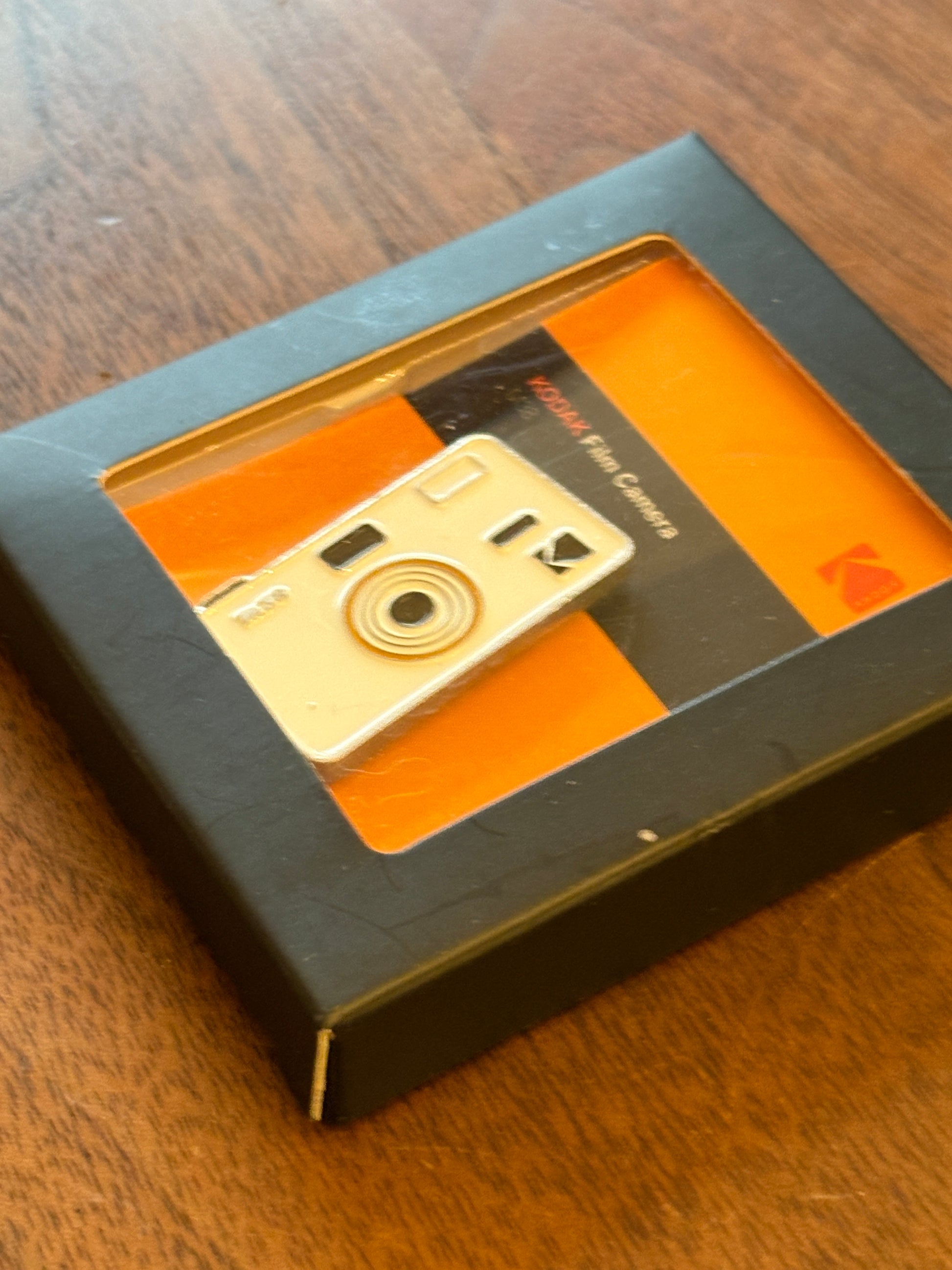 This is a very valuable pin badge that can only be obtained by those who purchased the camera. It is unused and comes with a box.