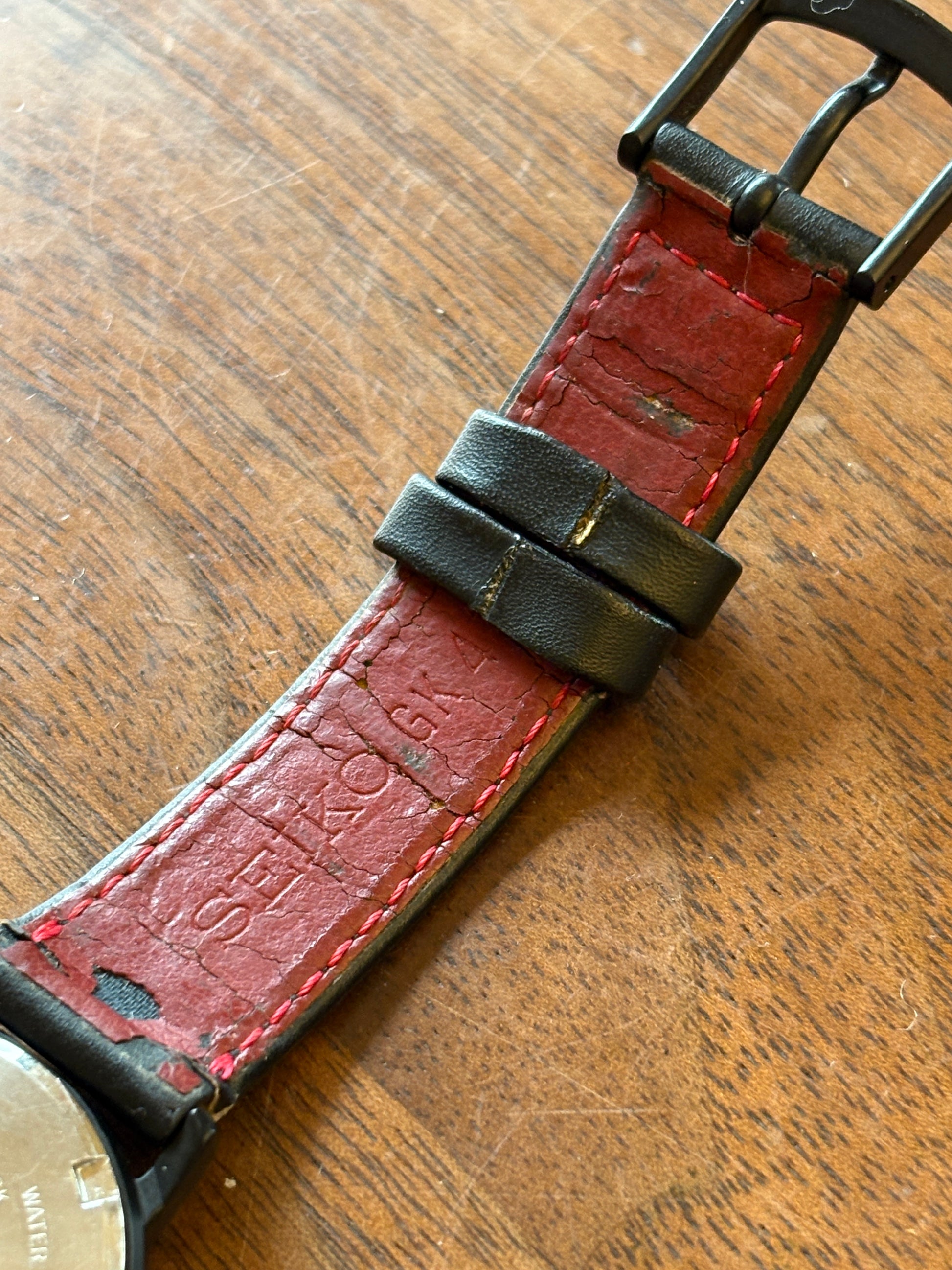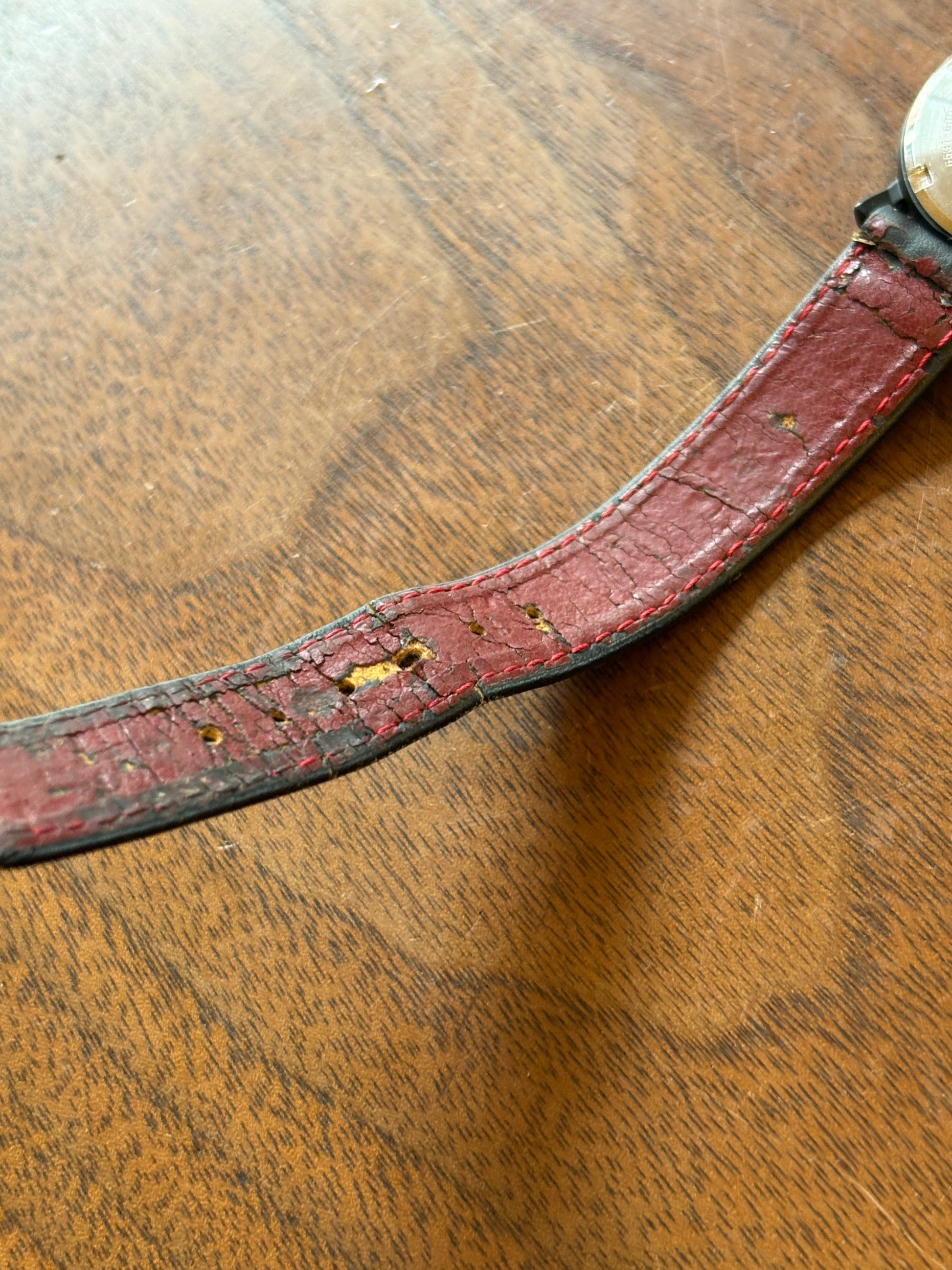 These models from the 80s with excellent designs are very expensive even in Japan. There is a small scratch at the 5o'clock area. There is damage on the back of the strap.