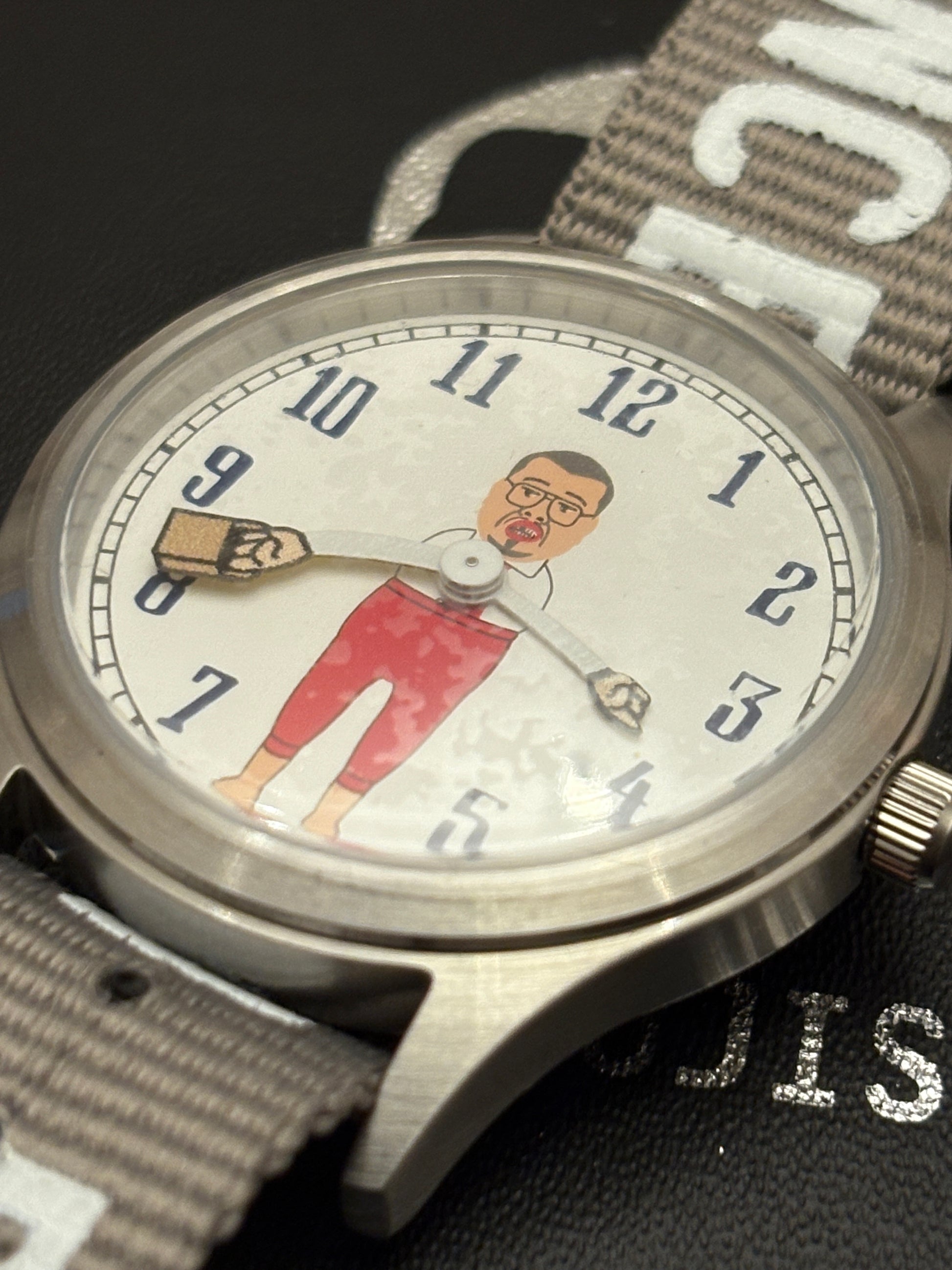 This is a collaboration model between Cookie, a very famous comedian in Japan, and a famous Japanese watch called Tick-Tock. The number of production is very small, and it is difficult to find even in Japan. If you know Cookie overseas, you must be very knowledgeable about the Japanese entertainment industry. He is also talented in painting, and has held solo exhibitions overseas. It is completely unused and in perfect condition. It is in working order. The case size is 38 mm.
