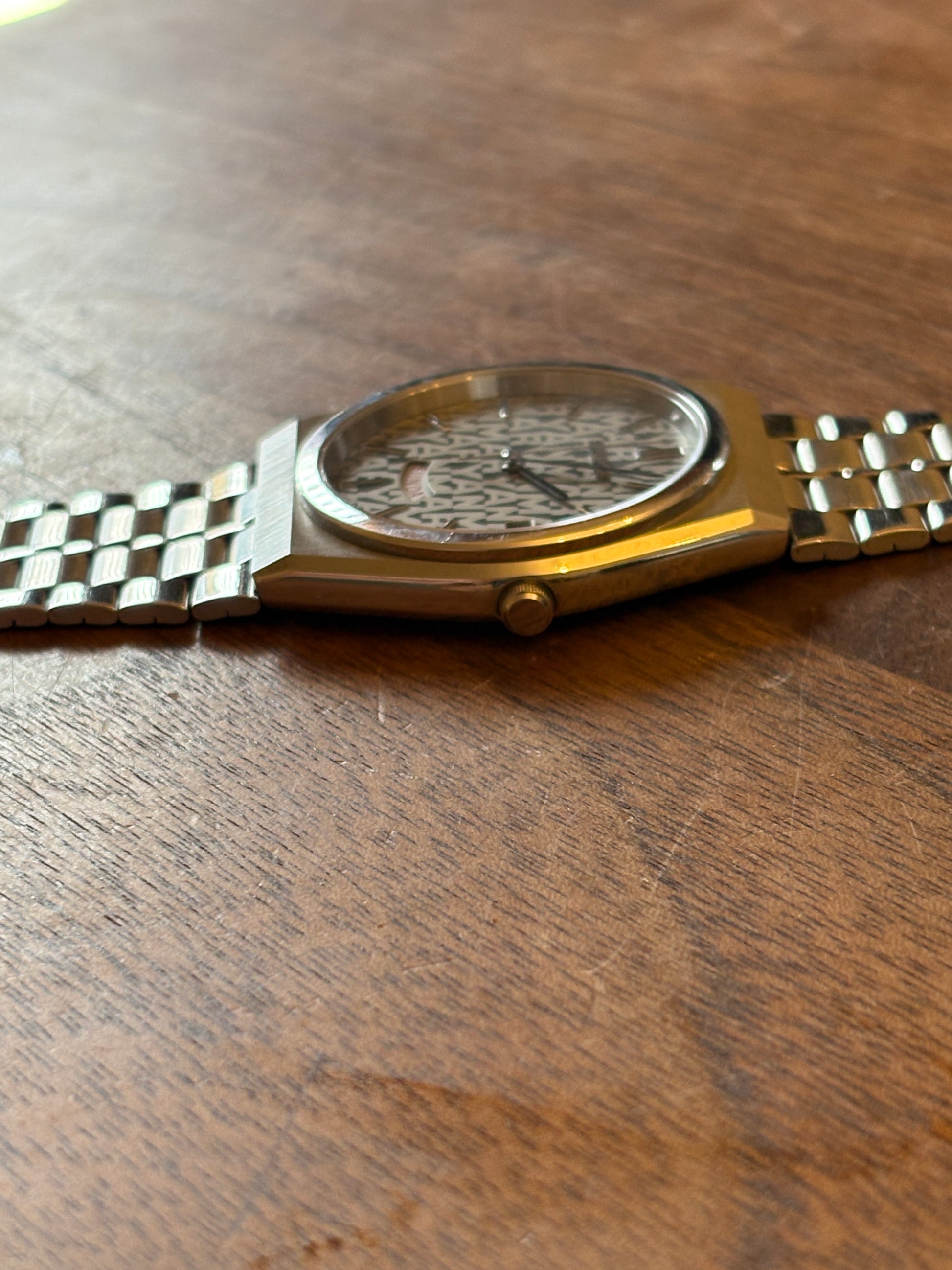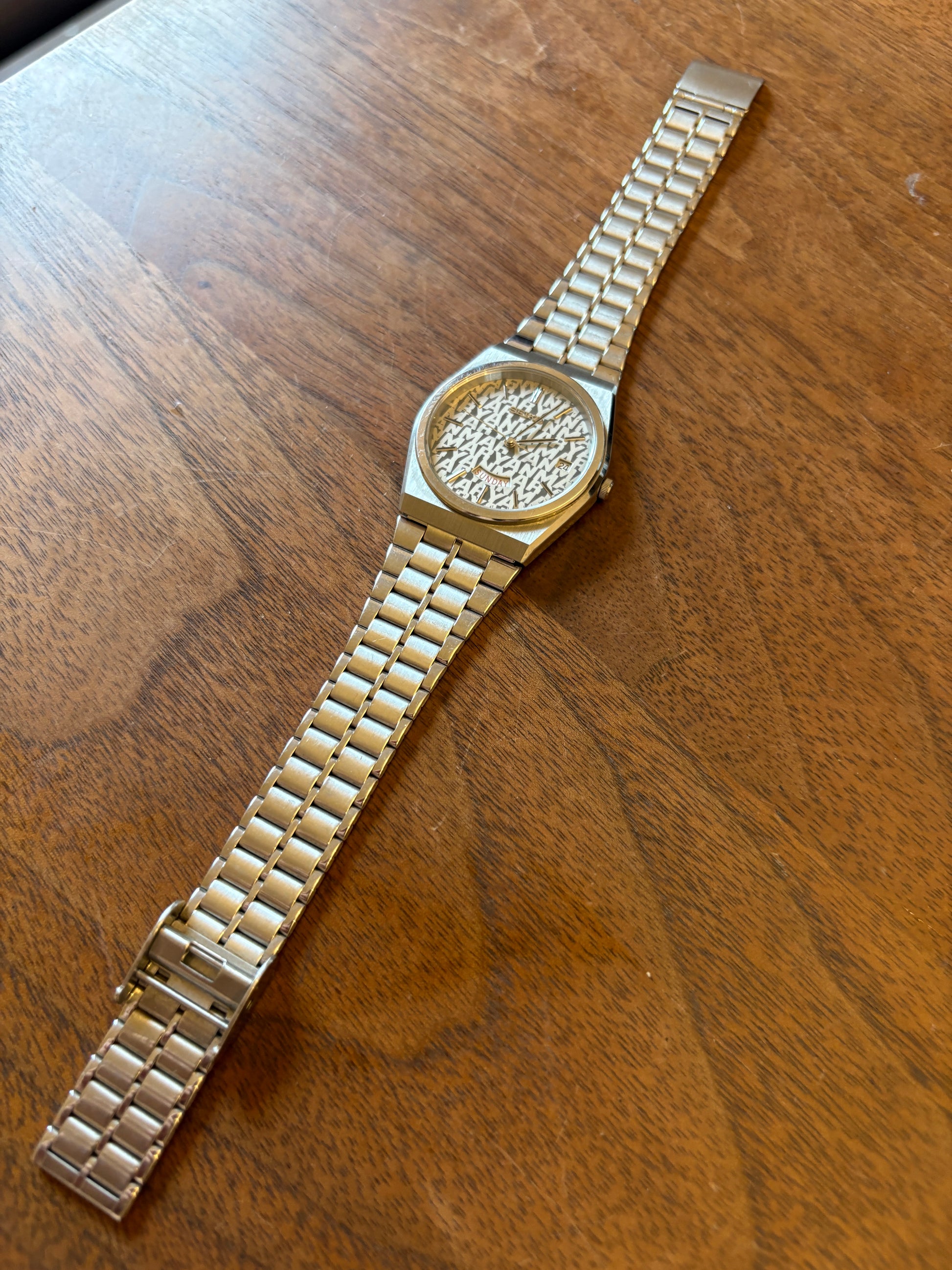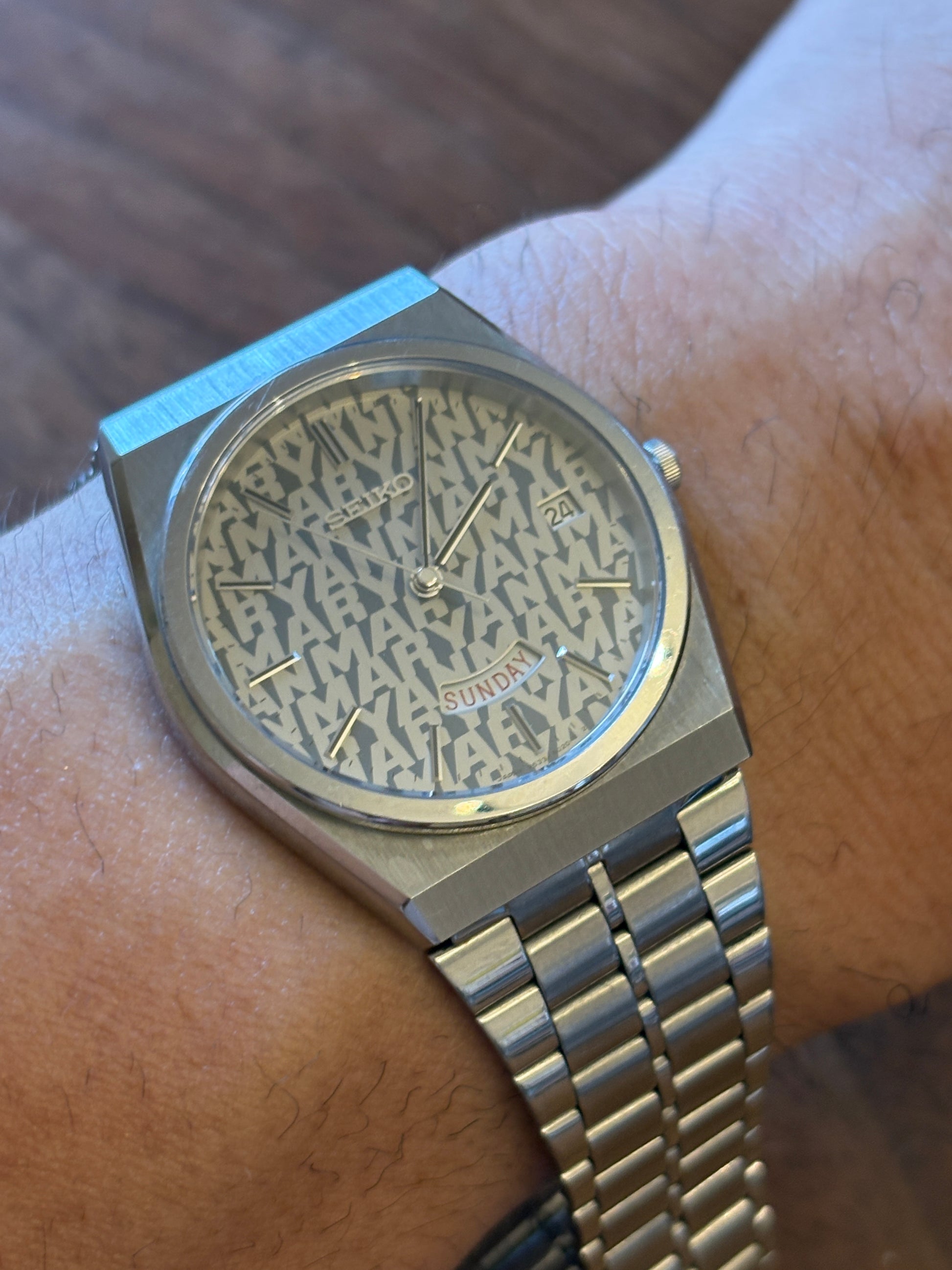 This is a Seiko watch made by Yanmar. 25 years of continuous service with Yanmar is written on the back cover. It is a very valuable watch given to a person who worked at Yanmar for more than 25 years quite a long time ago. I will never get it again. The dial is filled with Yanmar. This wristwatch is given only to those who have worked at Yanmar for more than 25 years. It is a substitute that is rarely found in Japan. Very valuable. It works fine .