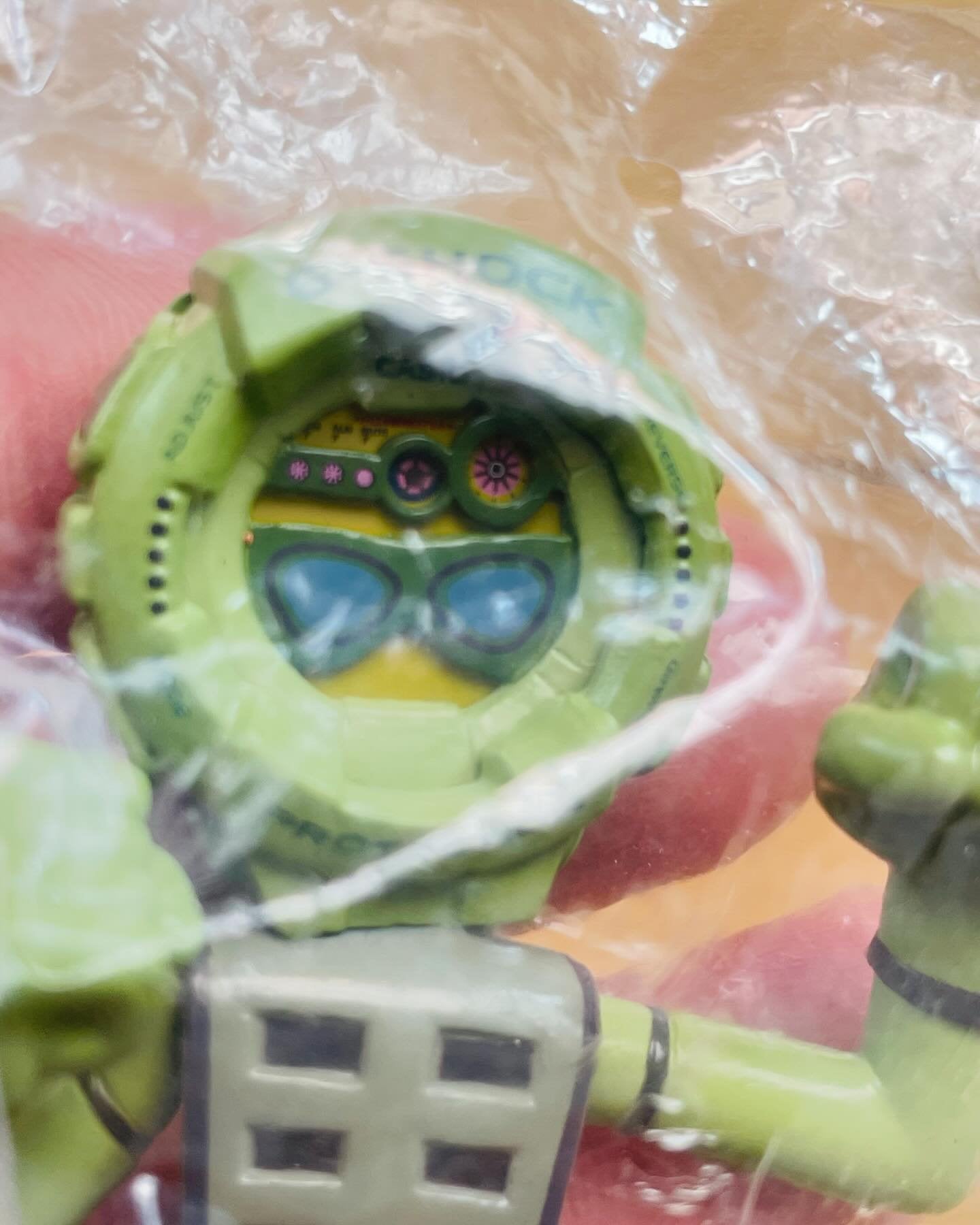This is a collaboration model with play set product designer Shirou Nakano. This is a G-SHOCK with a very good design, including the top and bottom belt colors that change, and the button colors. Unused figures are also included. This is also very charming. It is a model that is very popular in Japan. I think it is in good condition. It's working properly.