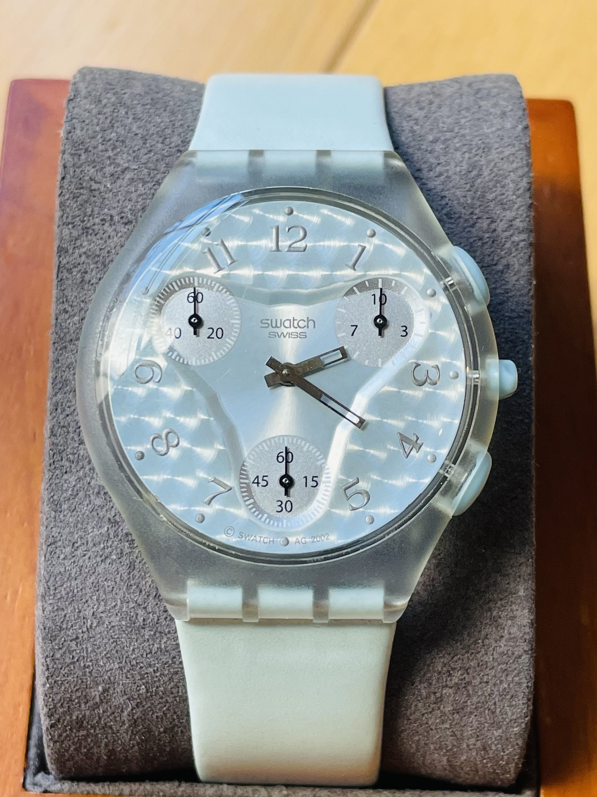 This is a rare chronograph from SKIN. It is working normally.A very old and very rare swatch. Really great design. It attracts people's eyes just by wearing it. A little happiness in your arms!