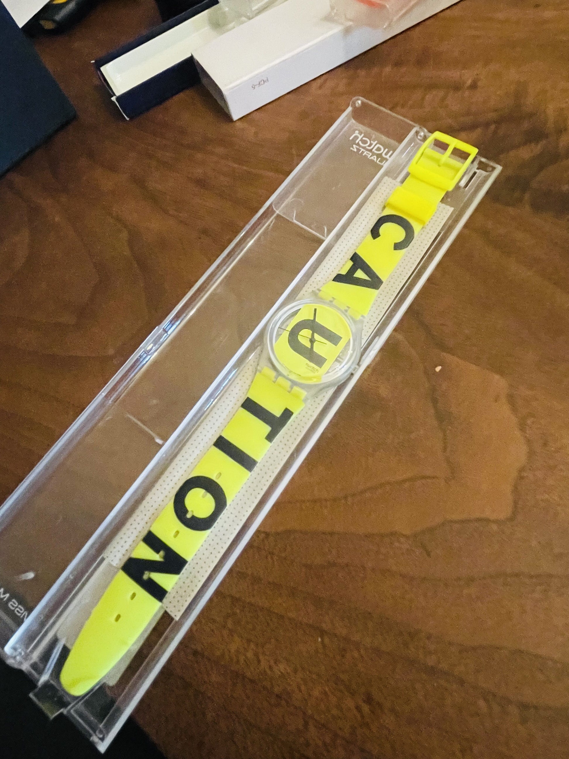 A very old and very rare swatch. Really great design. It attracts people's eyes just by wearing it. A little happiness in your arms!
