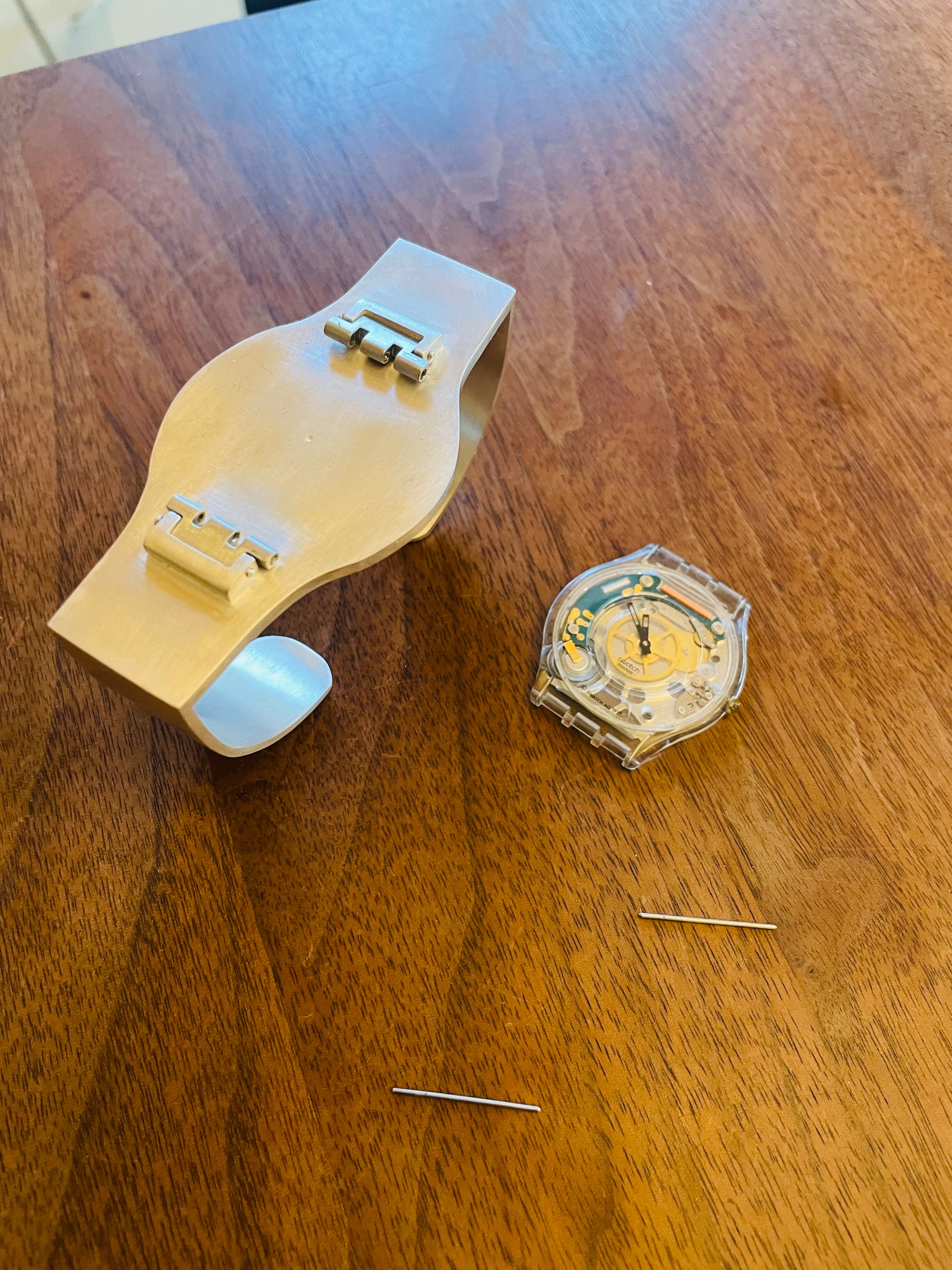 However, the quality of the swatch remains intact. I think the design matches the swatch very well. This is a bangle watch that no one else in the world has. You won't find a more luxurious swatch than this. It is a set with a clock. Any Swatch skin series can be installed. You can enjoy any watch. This is a very luxurious watch that uses over 100 grams of silver alone. The logo was engraved on the back of the bangle. We will never make the same one twice, so you can be proud of your purchase. Because absolutely no one has the same thing.
