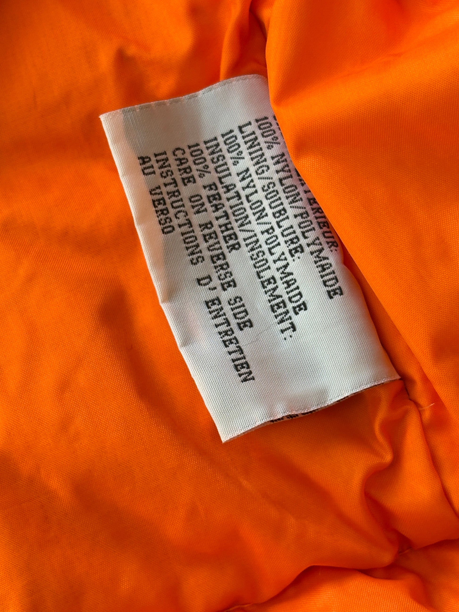 This is a bright orange down vest from Swatch. I would have loved to wear it if the size had been right, but it was too big. Swatch vests are really rare, aren't they? This is an authentic product.