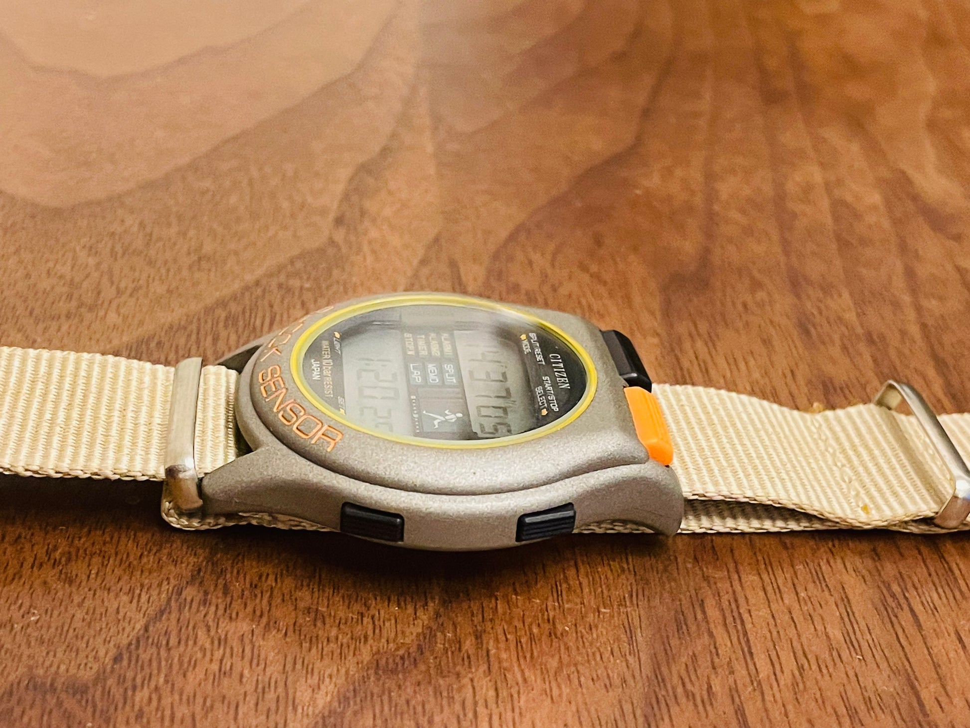 This is one of the most beautifully designed Citizen digital watches. The orange has a great impact and doesn't look old. I wish such a wonderful watch could be reprinted. Unfortunately, it has not been reprinted. This is a vintage item in very good condition. It matches the color of the belt very well and is very nice! It is working properly.