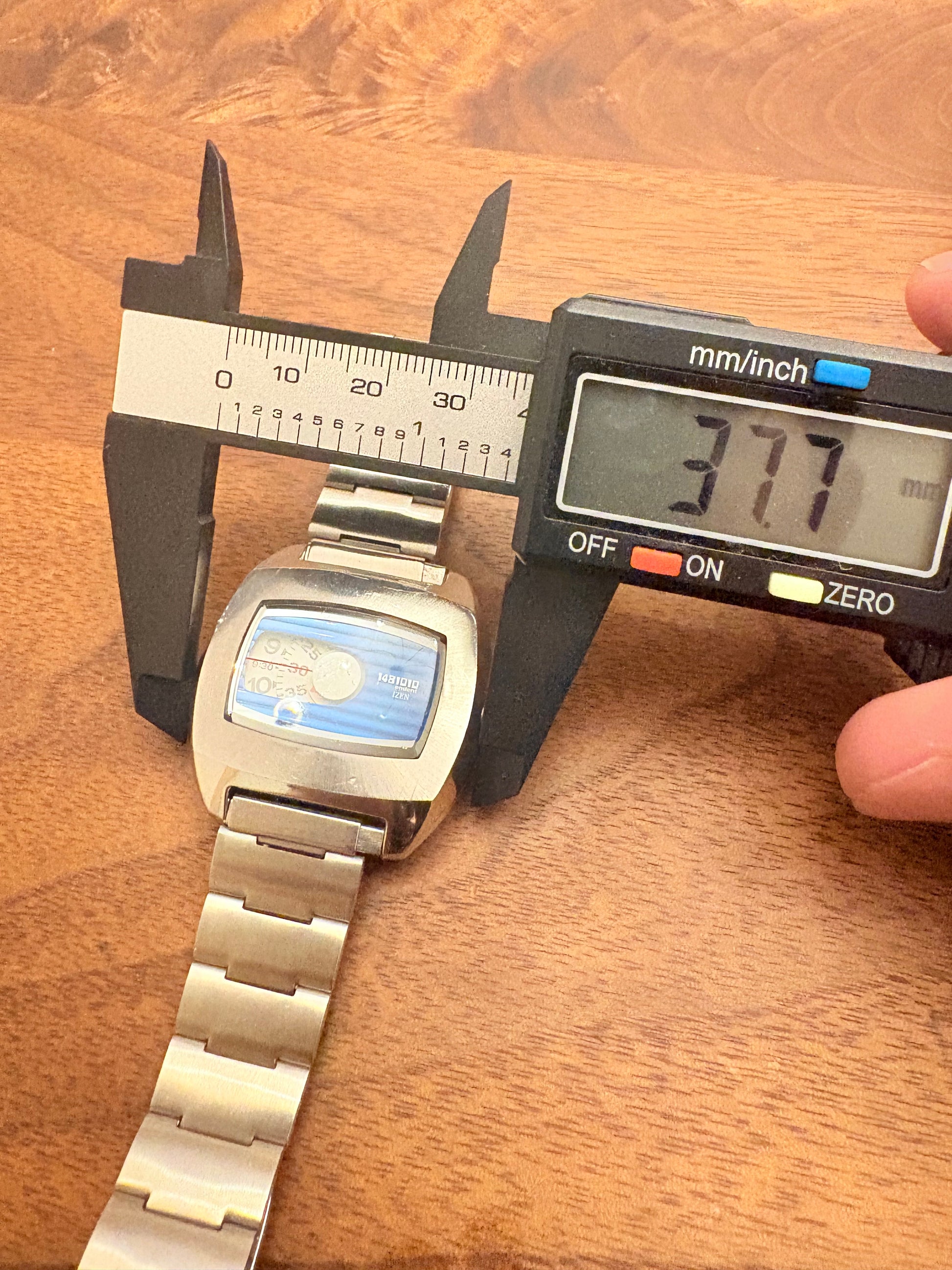 This is a Citizen Independent model that is very popular in Japan. It still has a very modern and cool design. It's a really great watch. In Japan, we are in the middle of the 90's boom, so the prices of watches have increased significantly. It is likely to become even more expensive in the future. It is working normally. It's hard to tell, but there is a slight scratch in the center of the windshield.The belt length can be up to 21cm.