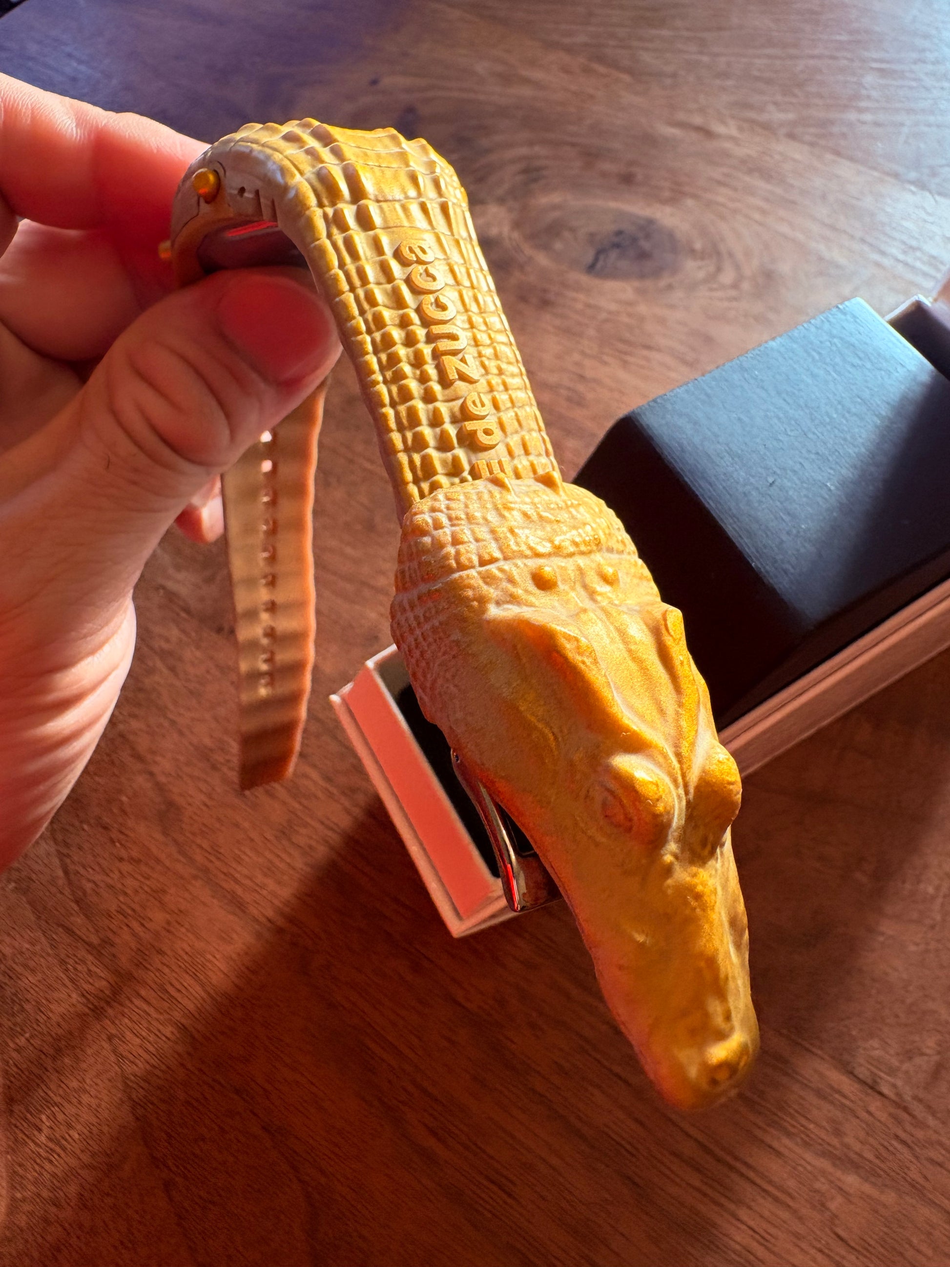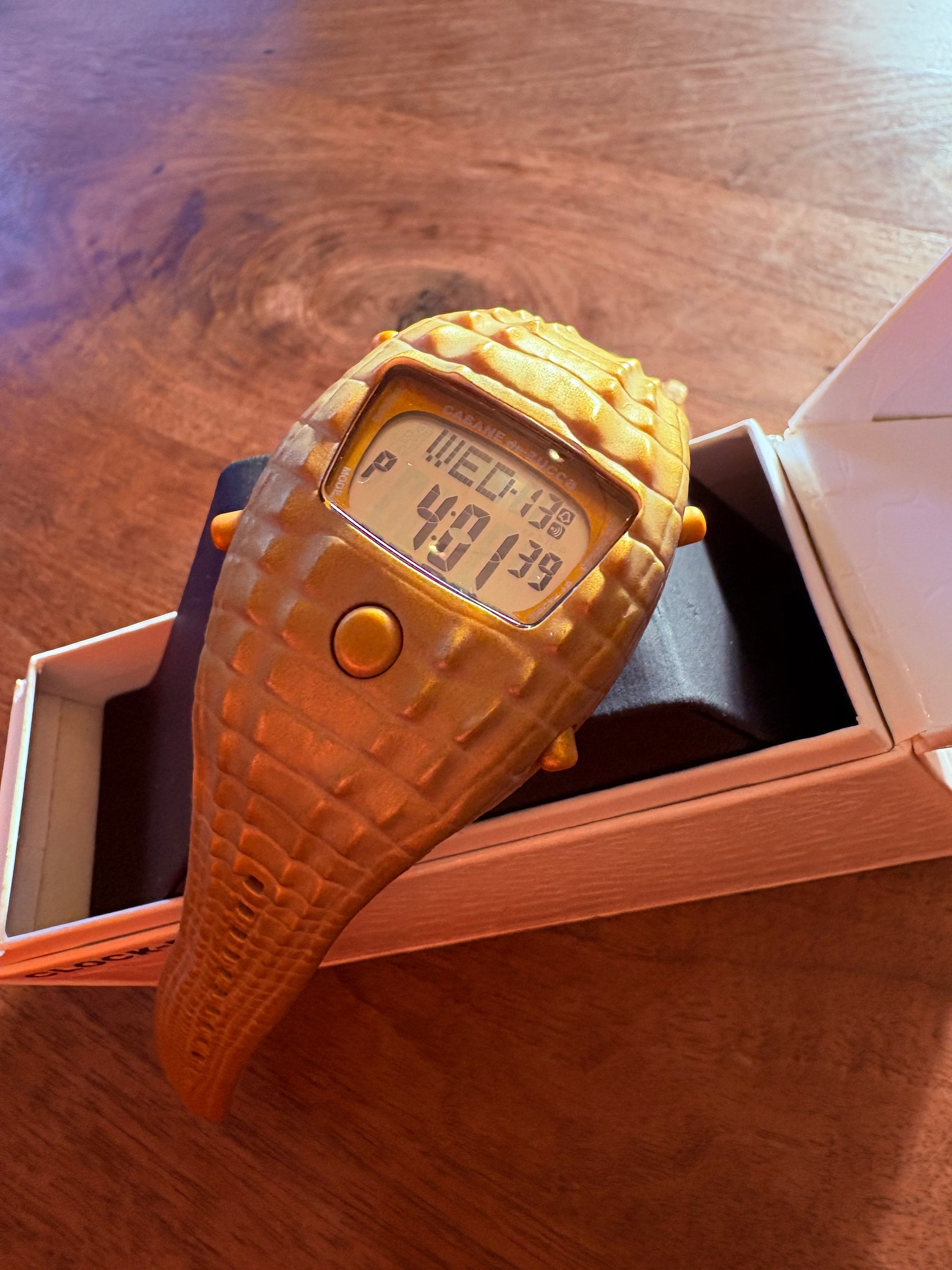 This series is about 20 years old. Although the number is gradually decreasing in Japan, this crocodile model was very popular and sold quickly. It is difficult to obtain even in Japan. And keeping the belt flexible is very difficult. Watches in such good condition are rare.