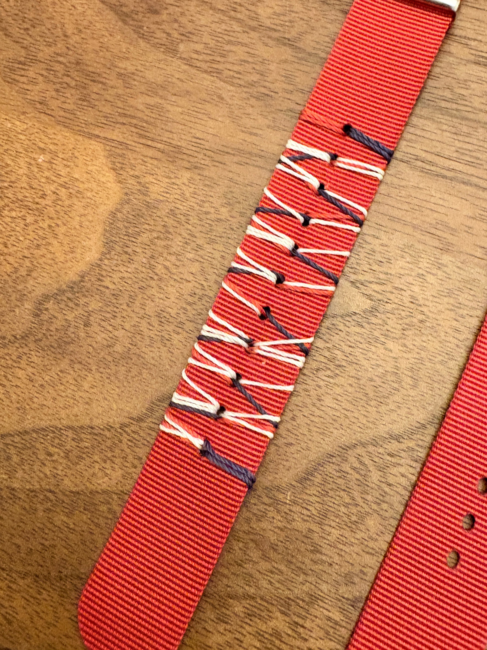 The NATO belt will look so beautiful if APC's team designs it.It has a wonderful design.The red color is very nice.The condition is as good as unused.It's also very nice to wear it as a pair with her