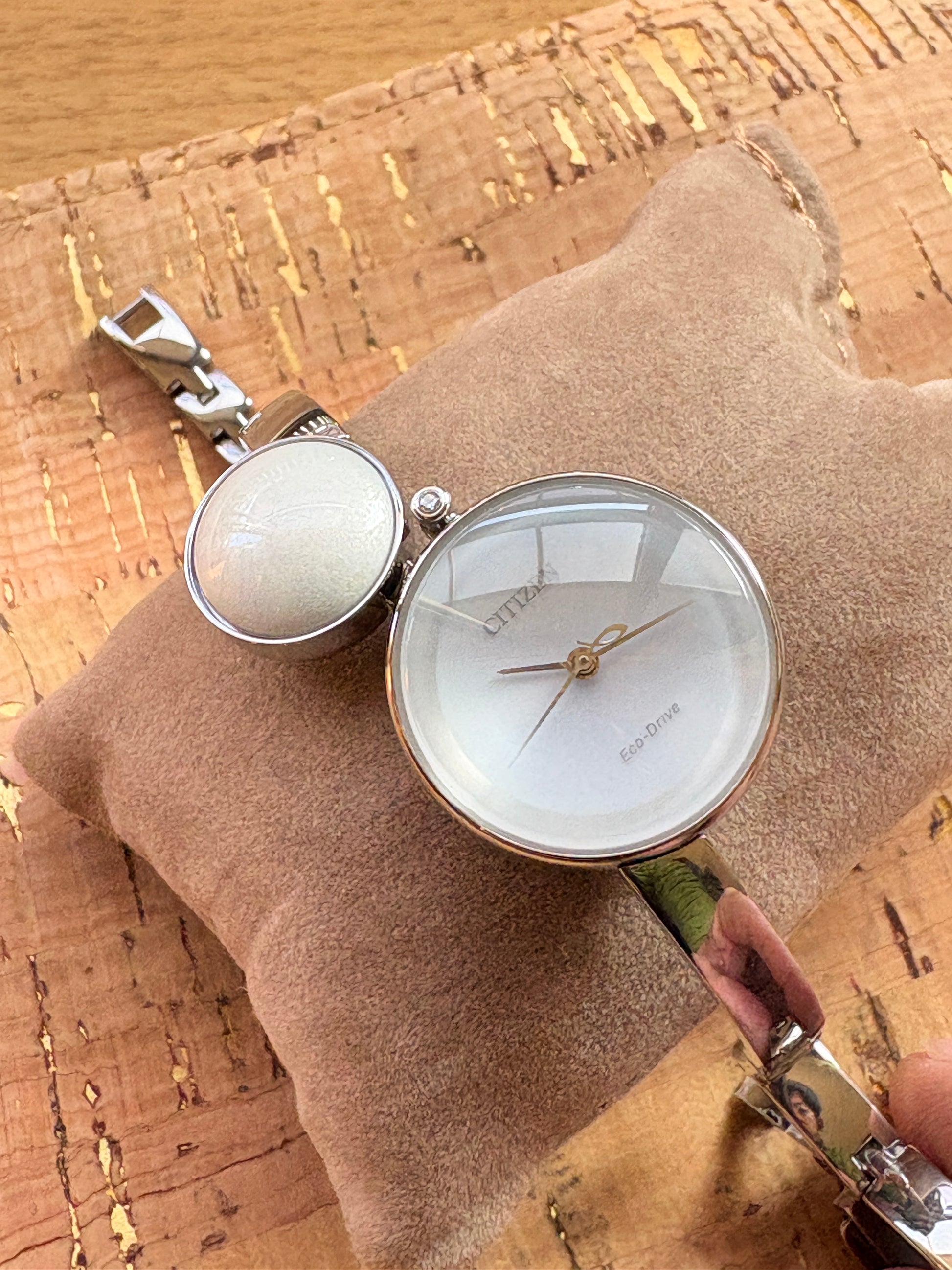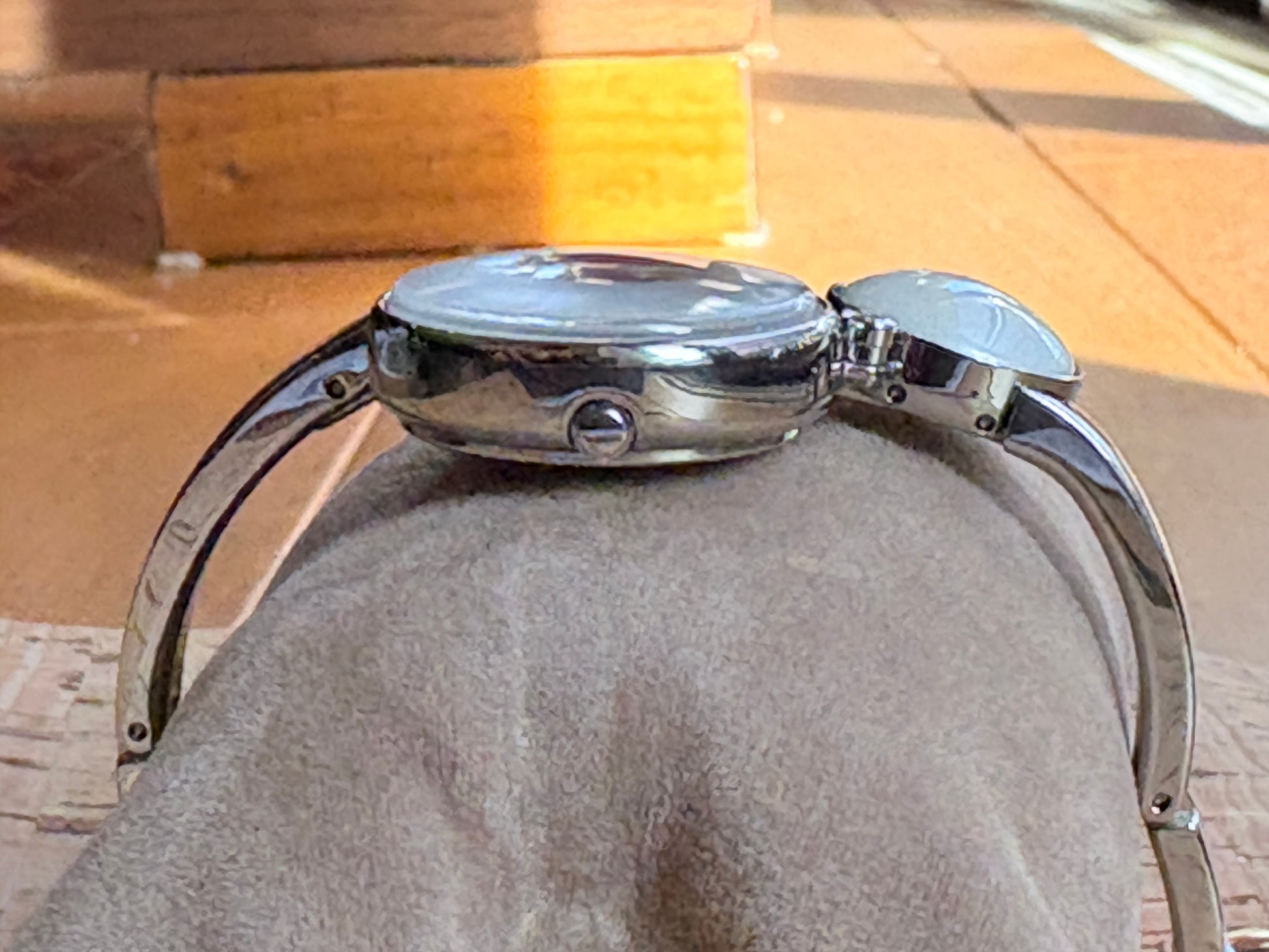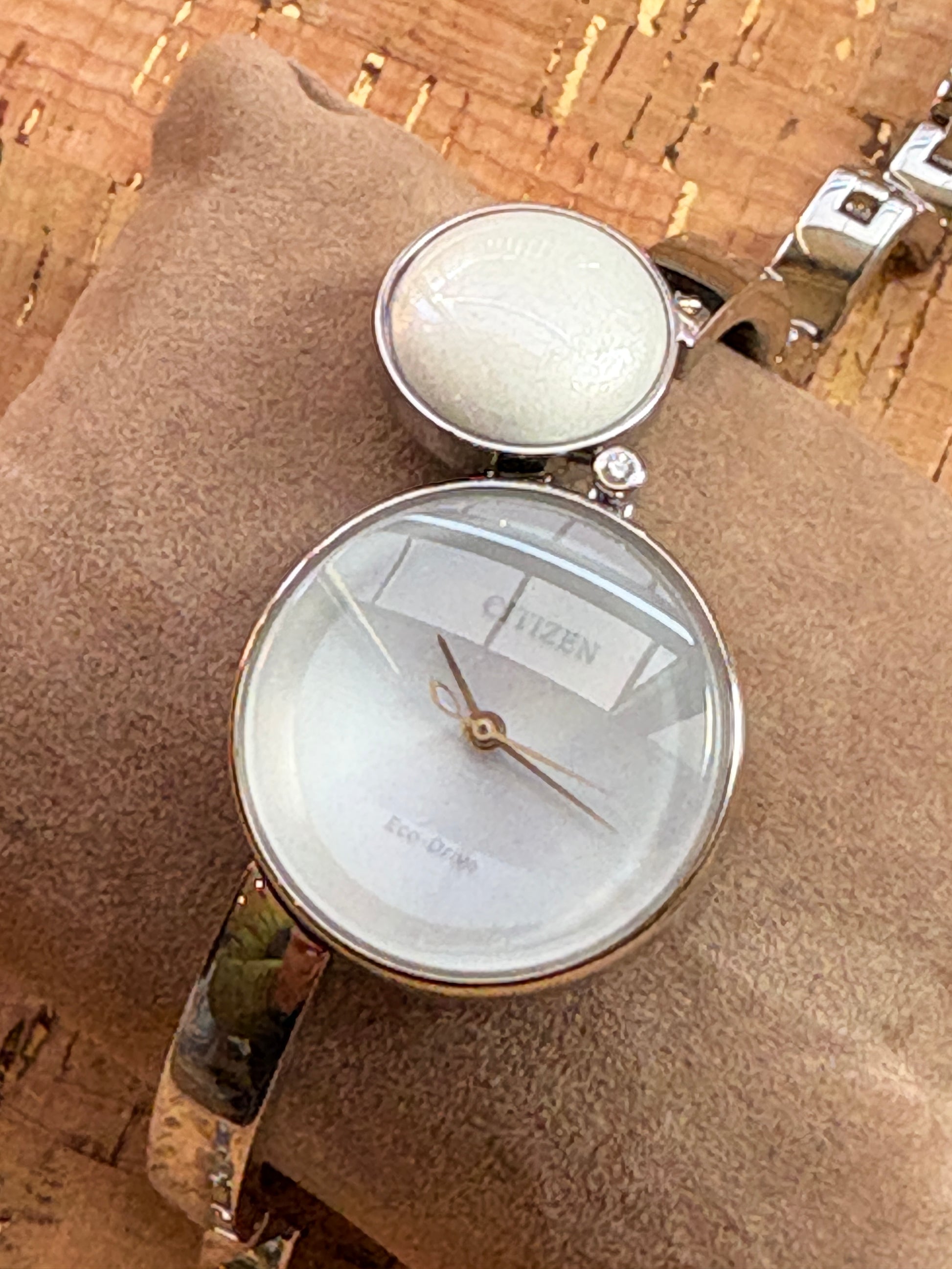 The white beads are made from lacquer balls, a Japanese craft made by Sakamoto Otozo Shoten, which was founded in 1900. There is a small diamond between the watch and the lacquer ball. It has a very modern and high-class design. The case has a very elaborate case that resembles the bark of a tree. The windshield has a slightly white and muddy design. It is an unused item and all accessories are included. The length of the belt is approximately 19 cm and can be adjusted. This is the perfect watch to give as a gift. I think men can do it.The original selling price is 73,000 yen, making it a great bargain.
