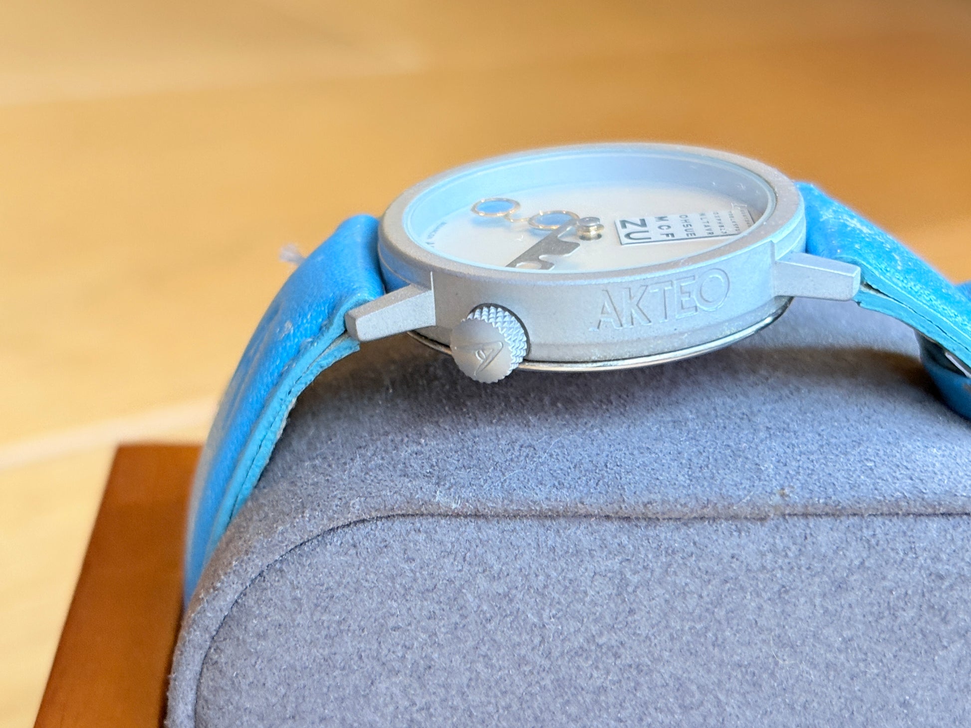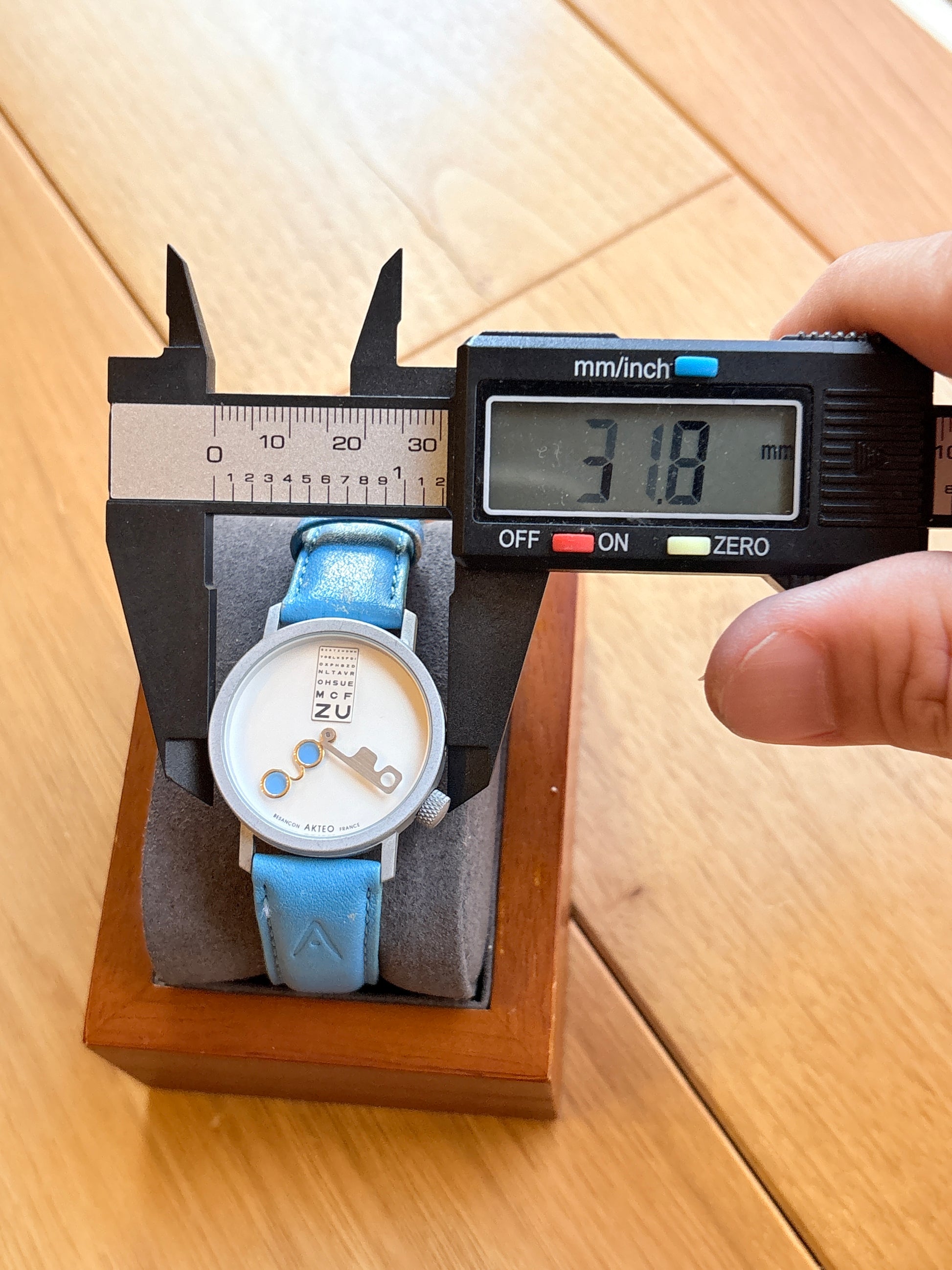 The hands on the glasses are very impactful and cute. The body is in good condition. The belt has some discoloration. There is no problem in using it. It is working normally.