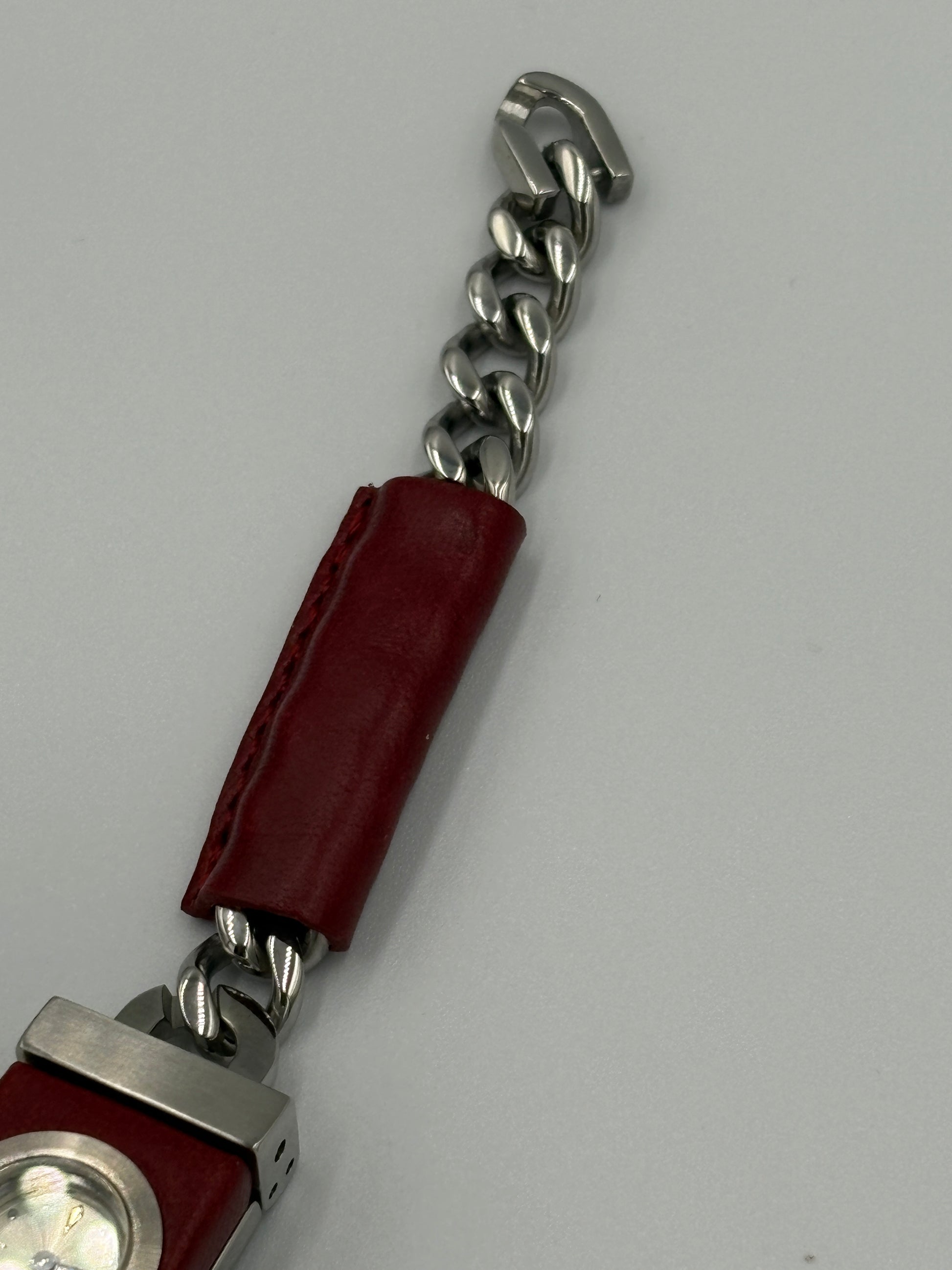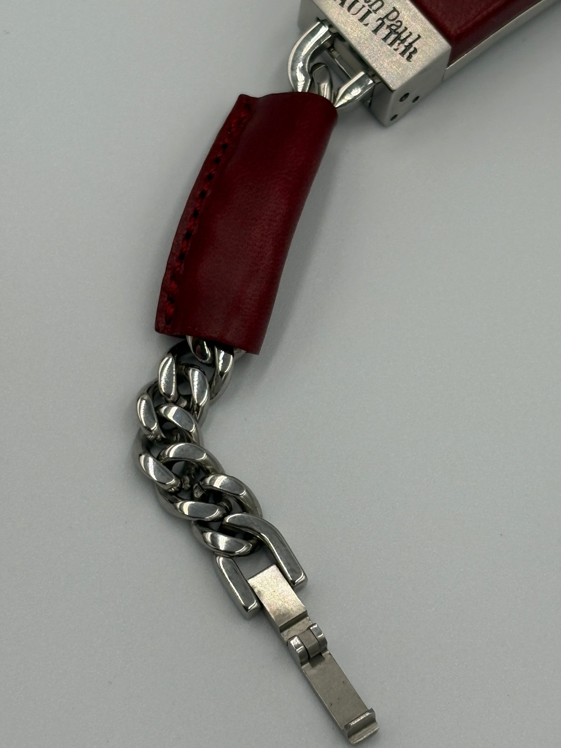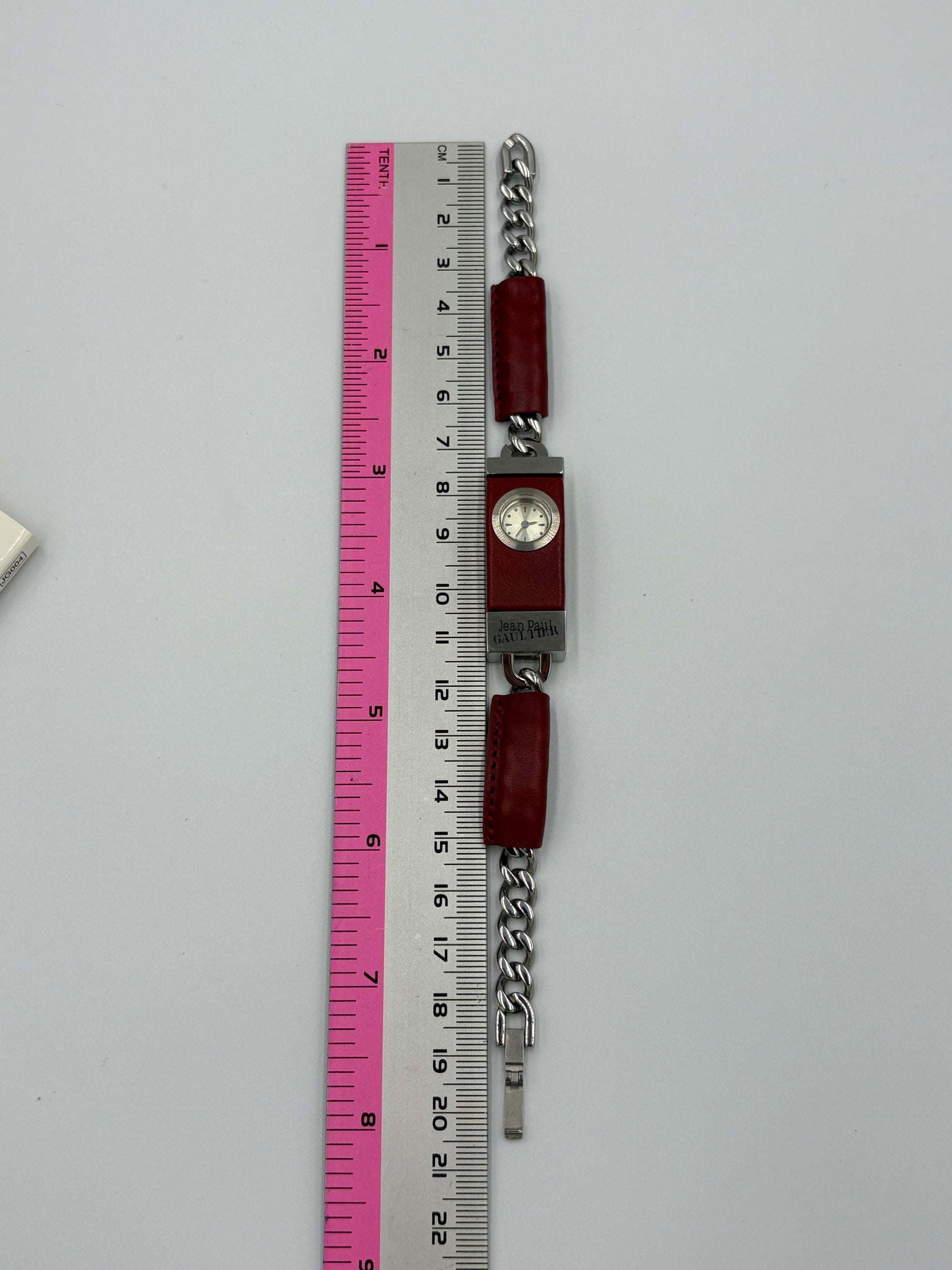 This is a very popular Gaultier bracelet watch. It's a special item, unused and complete with box and instructions. This watch, suitable for both men and women, looks truly timeless. It's a true Gaultier piece, and it's in perfect working order. This is a real bargain.