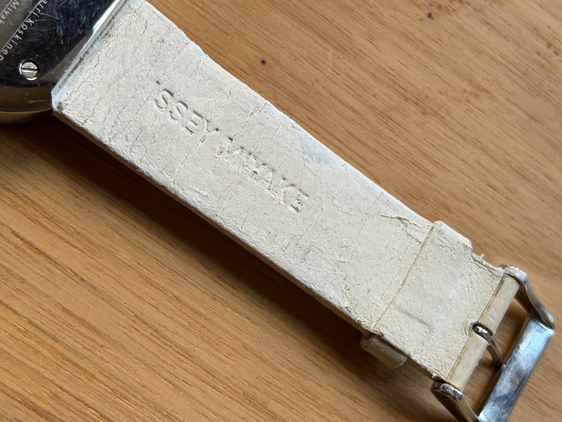 This is a collaboration model between Harri Koskinen To Issei, Miyake, and Seiko, which is rarely seen even in Japan. The dial resembles the Manhattan skyline and the beautiful green second hand are irresistible. Even now, it's a truly beautiful design. It's truly genius to create such a beautiful design. The strap has some damage but is still usable. Of course, it's original and in good working order.