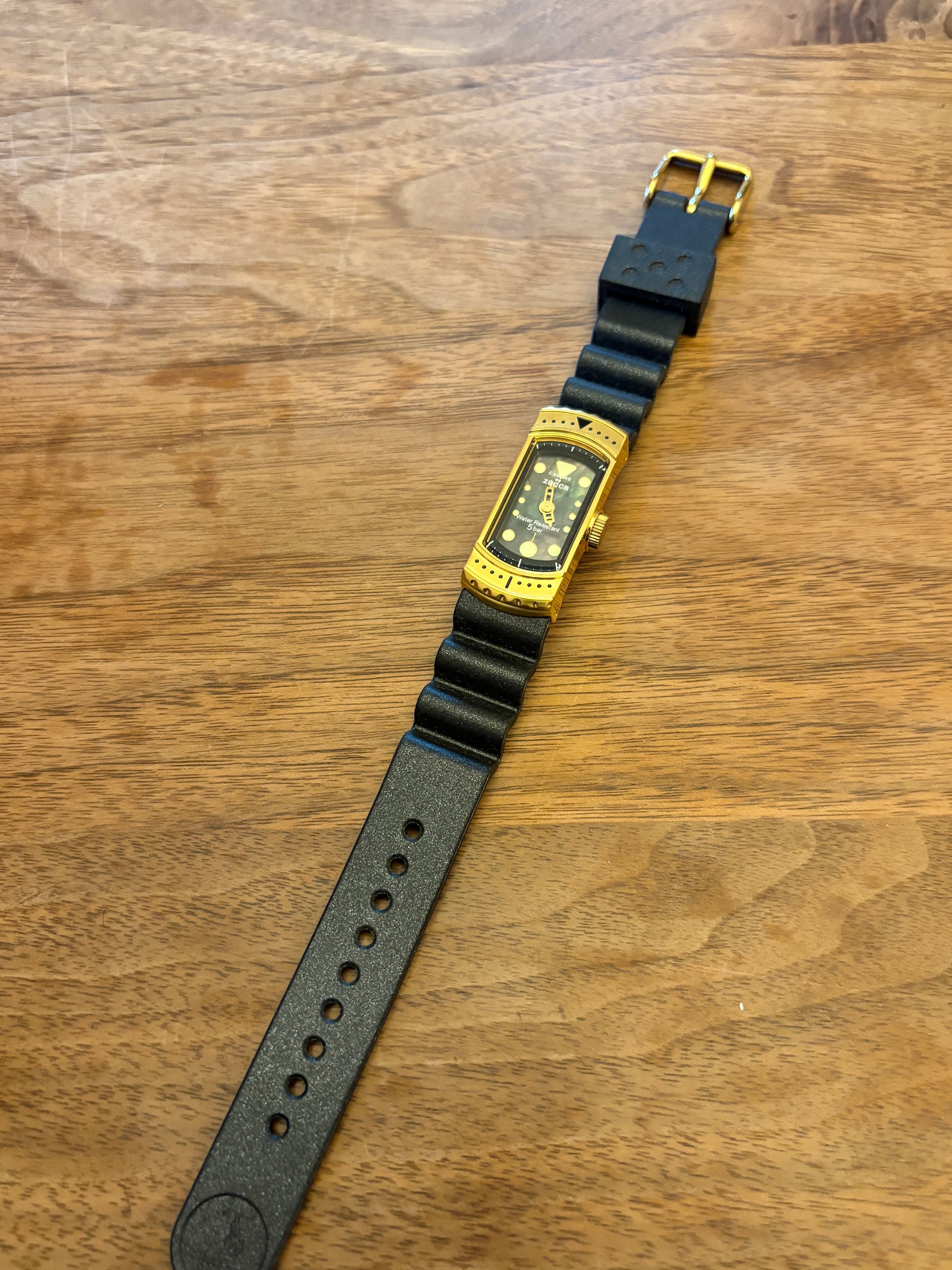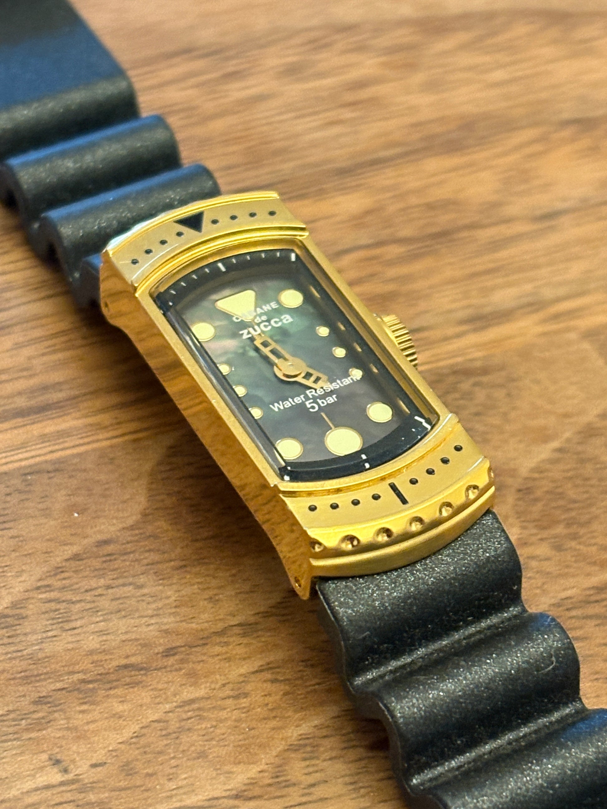 This is a hidden gem from Zucca that is not well known in the world yet. It has a very unique design, like a diver's watch cut into a ring.
