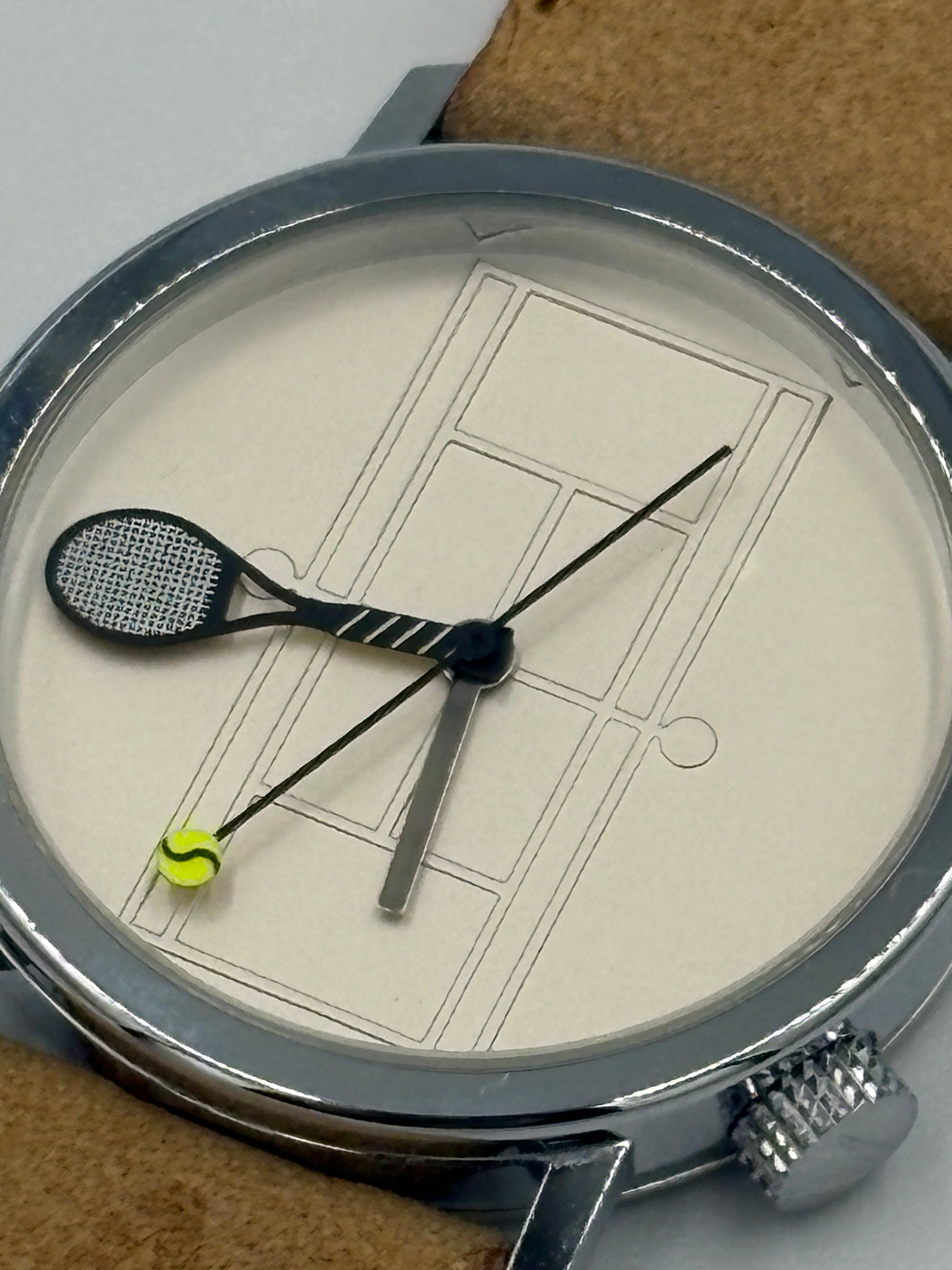 This is the perfect watch for tennis fans. It's brand new and comes with its box. The dial is absolutely beautiful. The case back looks dirty, but it's just a sticker. It's in perfect working order. The case size is 32mm. It's a quartz movement.