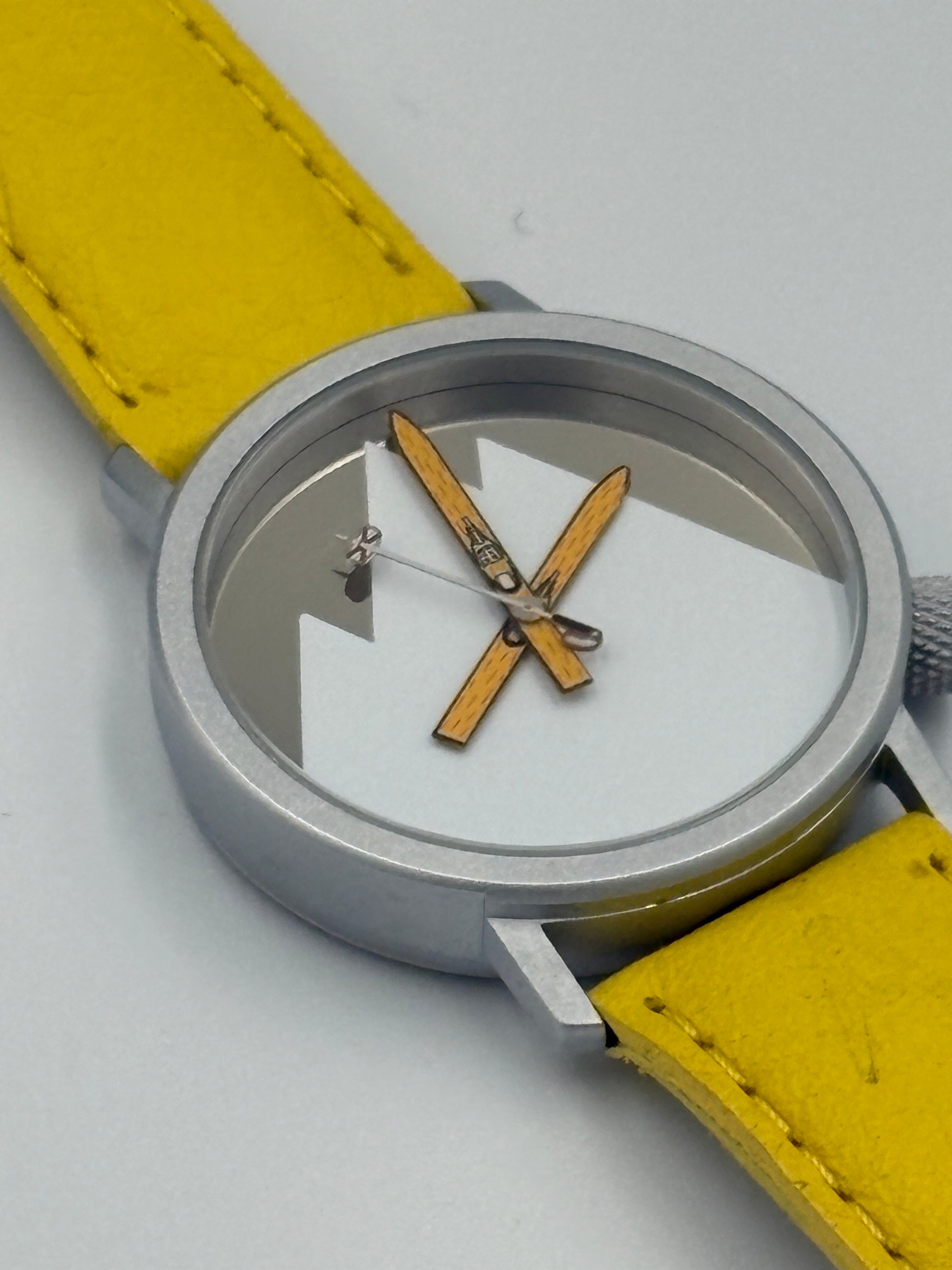 This is a must-have watch for ski lovers. It's so cute. I want to wear this watch all winter long. It's so cute. It's in perfect working order. The case size is 32mm. It's a quartz movement.