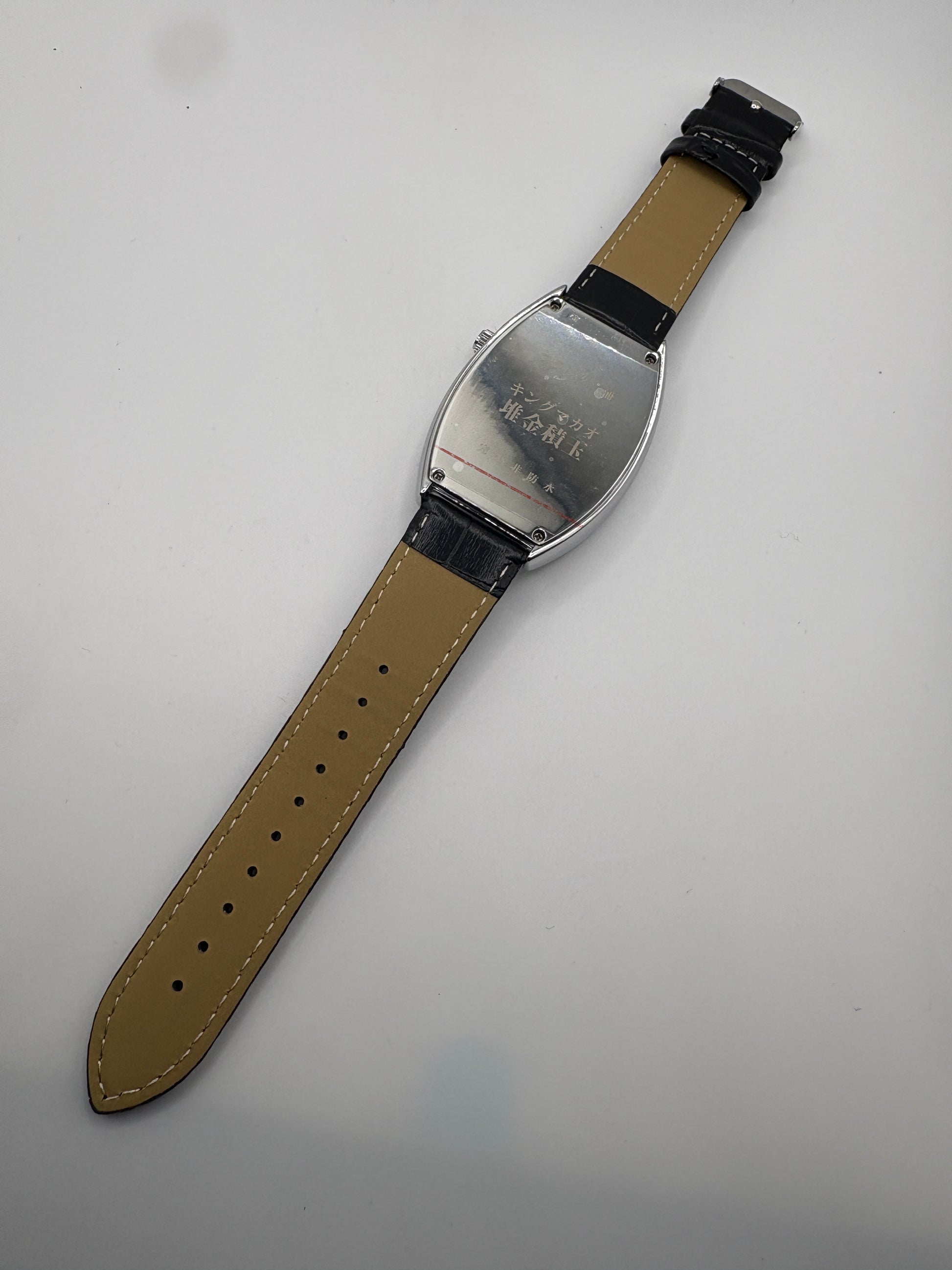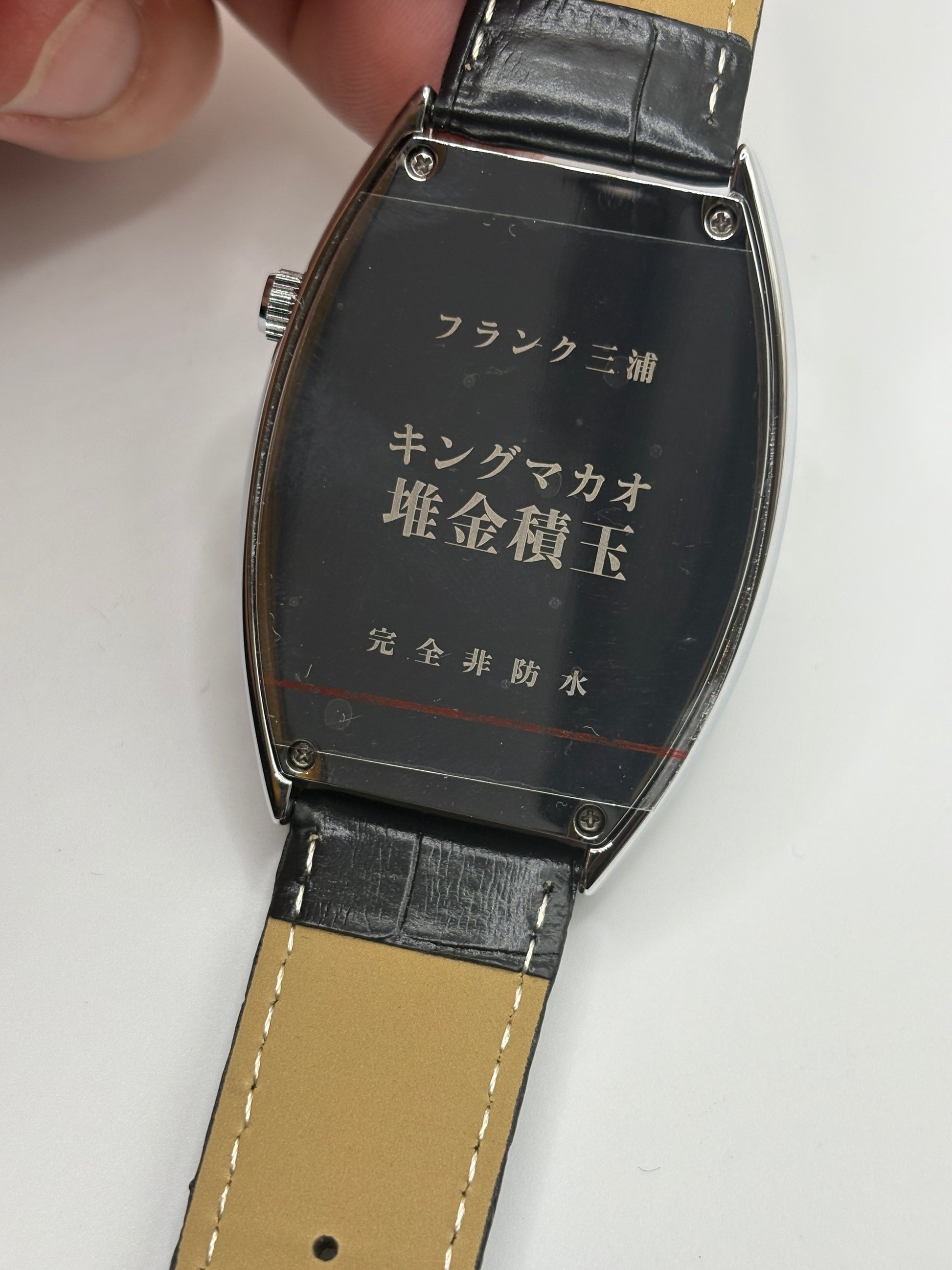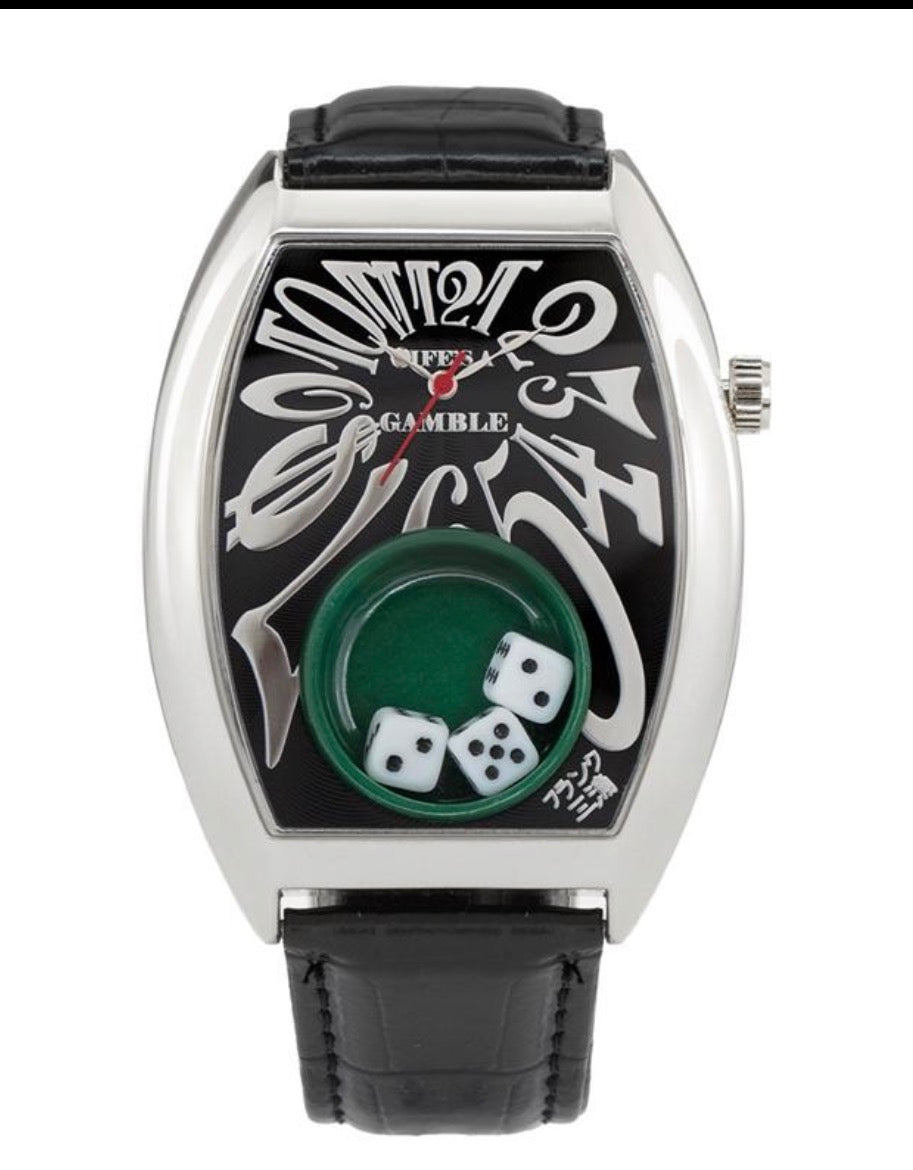 This is Frank Miura's Macau No. 5 modified. It's a must-have watch for gambling enthusiasts. I'd never go gambling without this watch, lol. It's a really eye-catching watch. It's perfect for a story. It's in perfect working order. Approximate dimensions: Case: 47 x 42 x 14 mm. Strap: Maximum wrist circumference: 22 cm.