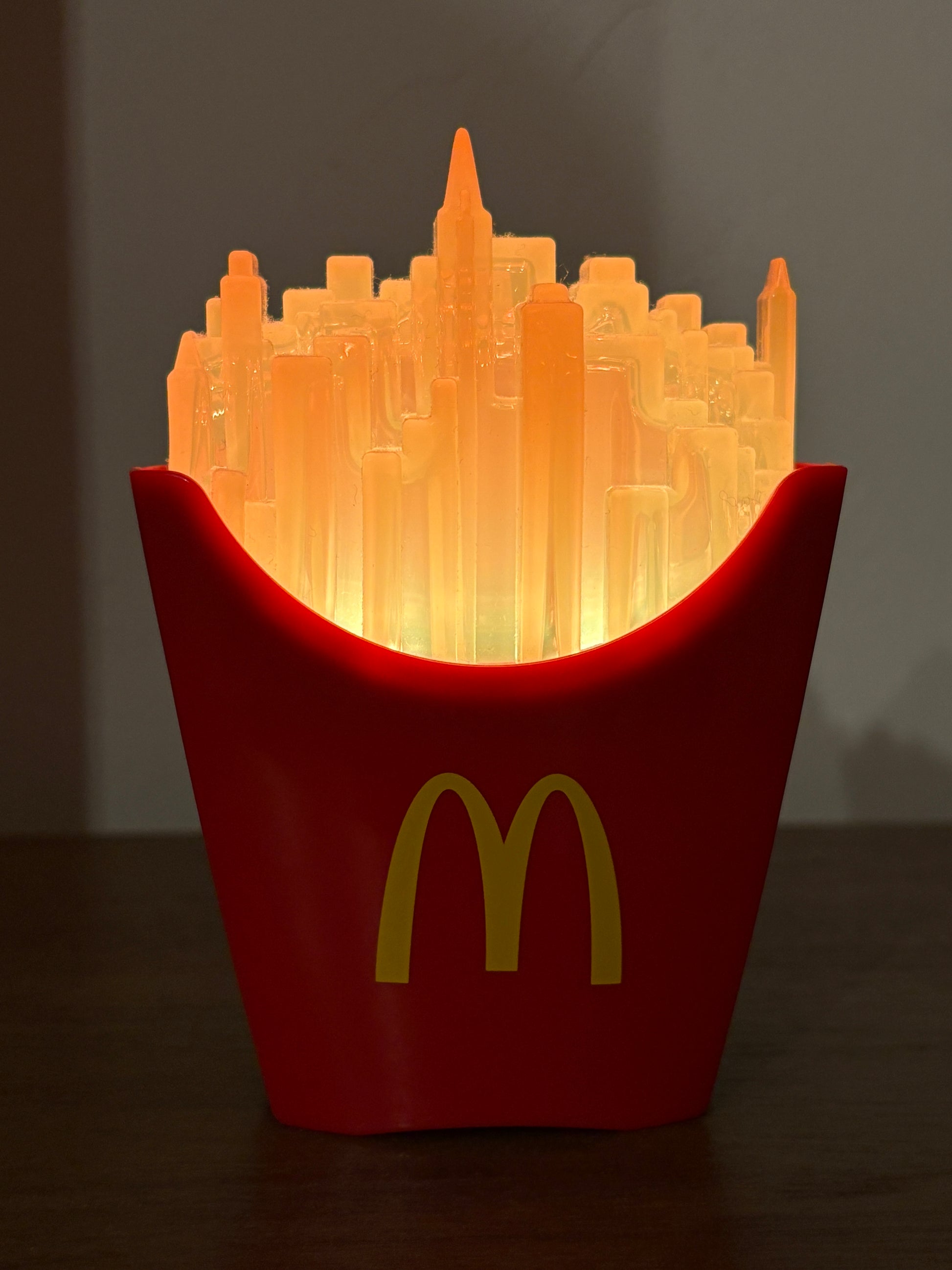 It's a genius design to make McDonald's fries look like the night view of Manhattan. I don't know if the McDonald's employees or the Manhattan Portage employees came up with the idea. Which idea is this? I'm very concerned. A truly genius idea! This is a very valuable item that was sold by lottery in Japan. This is an unused item.